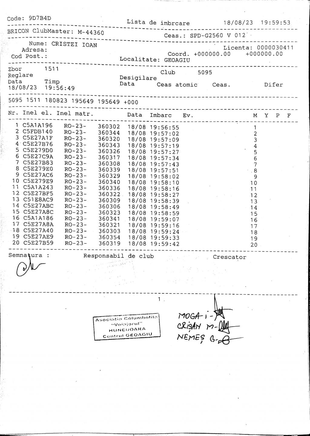 | 15 | Mygu Razvan | HD1413 | TOP | BRAD |