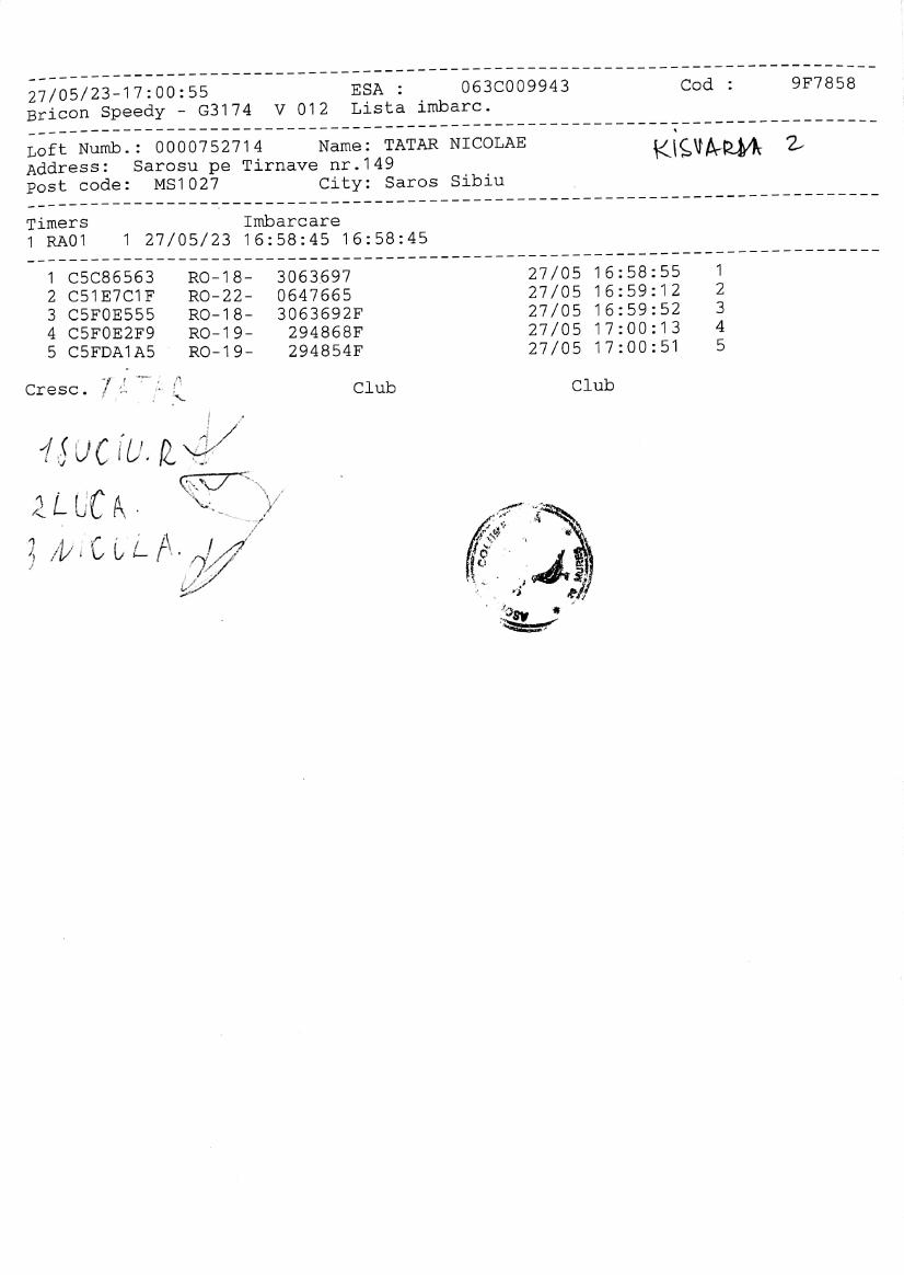 | 23 | Sita Ciprian | MS1049 | TOP | Sighisoara |