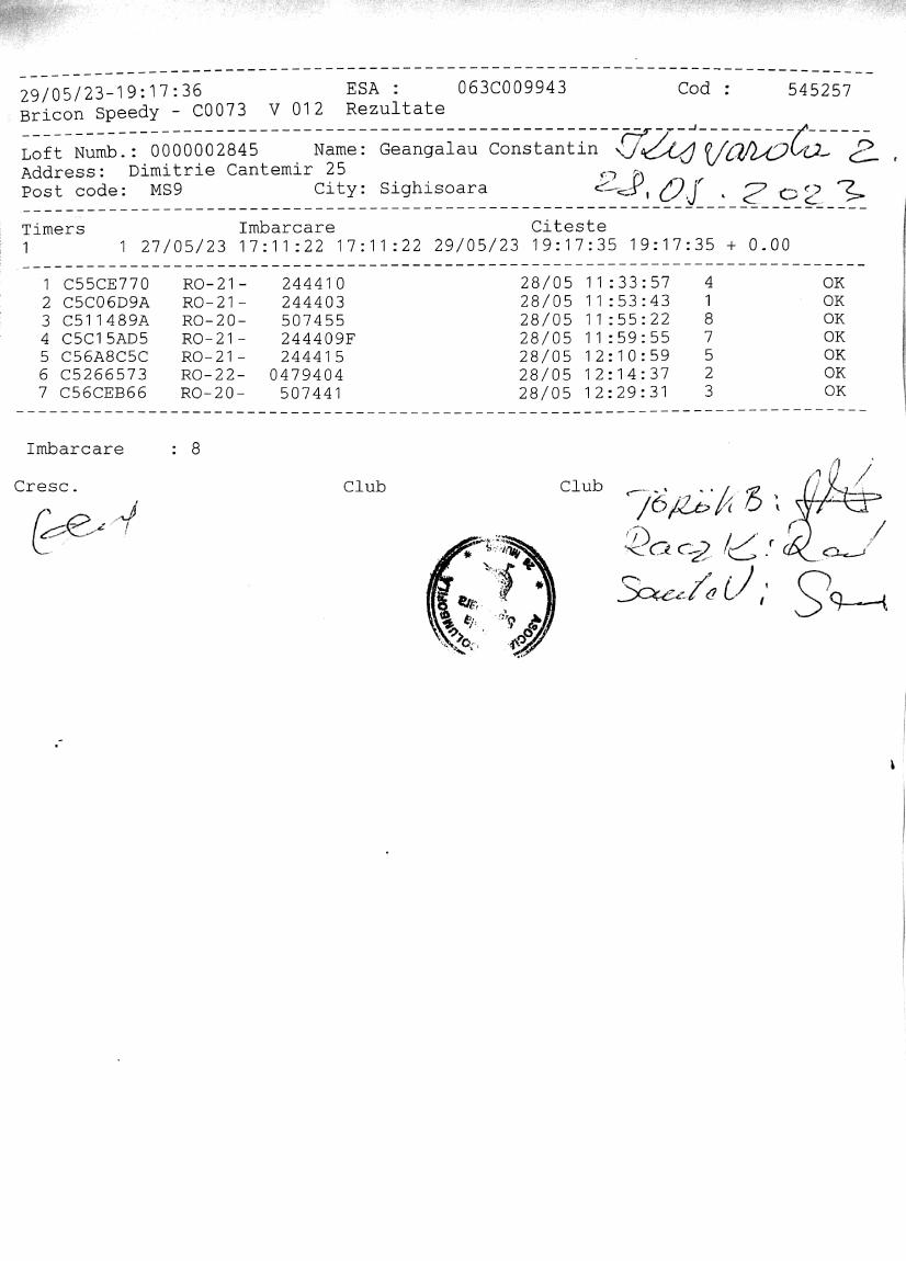| 8 | Costea Alexandru | MS1029 | TOP | Sighisoara |