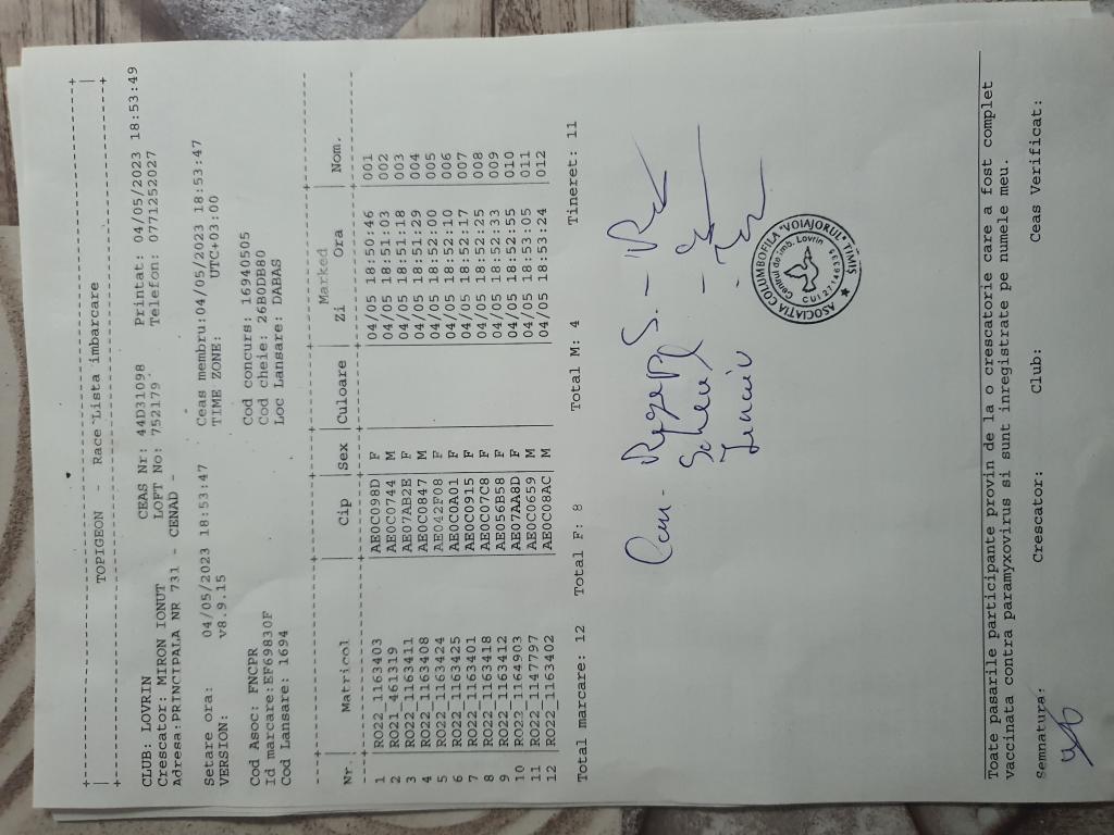 | 1. Procese verbale de imbarcare: | ||||