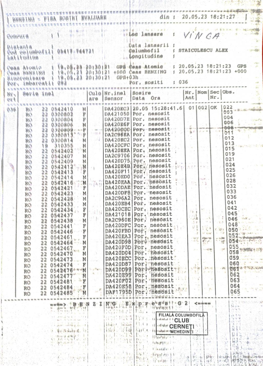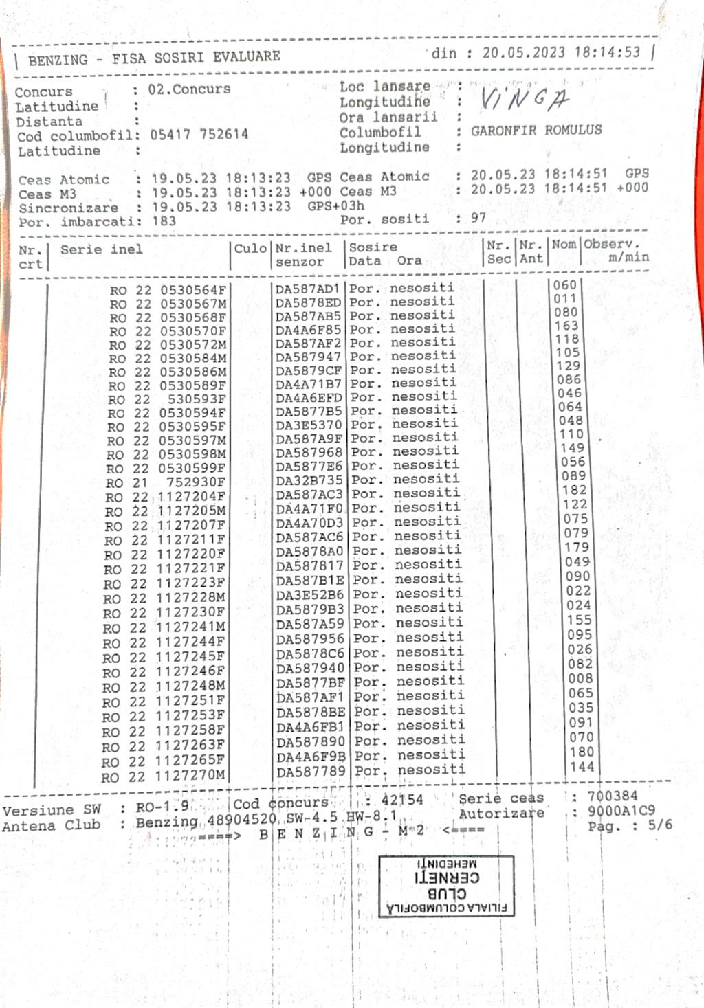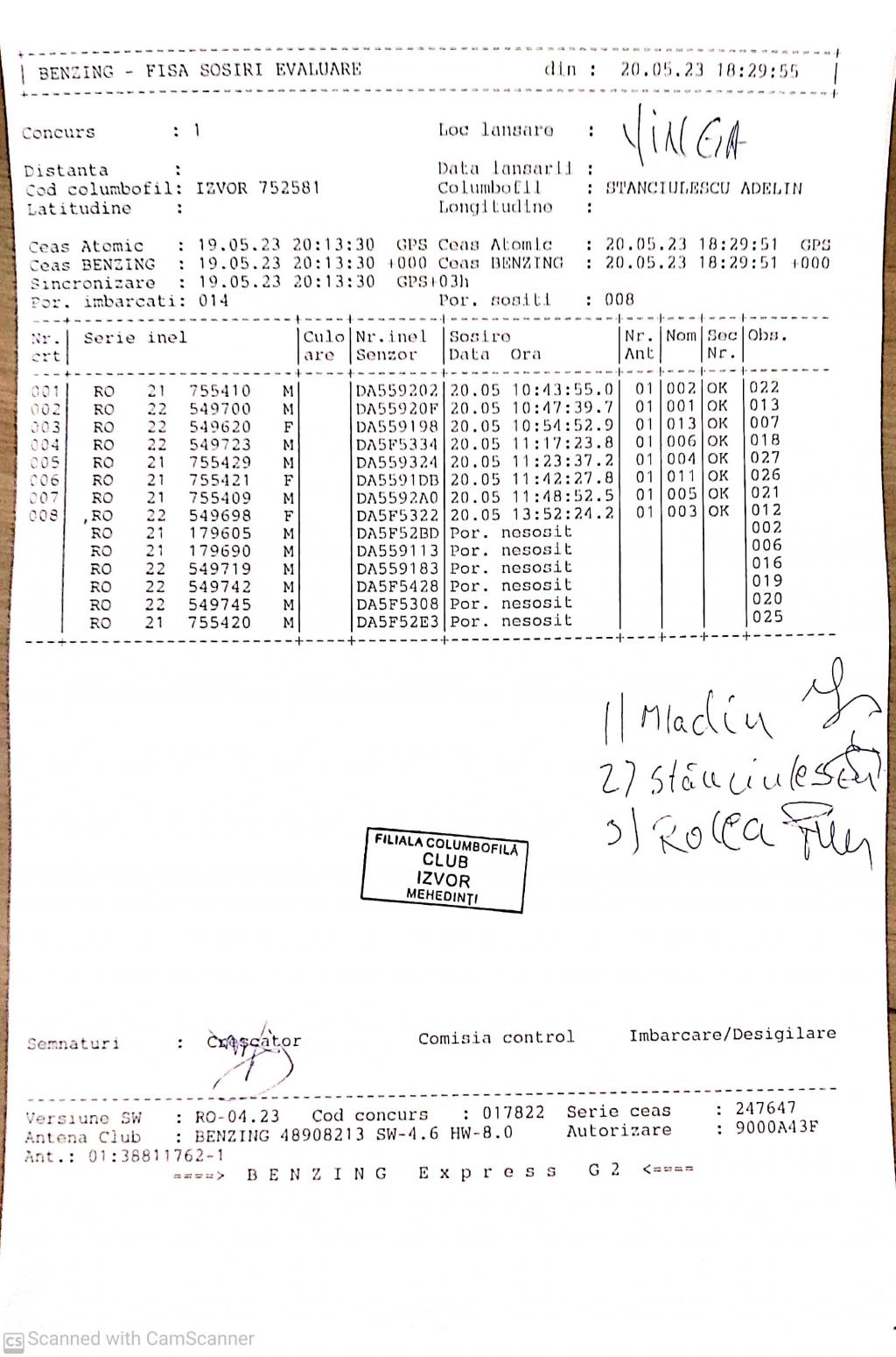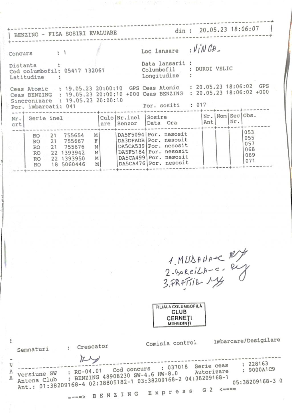 | 117 | Zaharescu Mirel | MH875 | BEN | Izvorul Birzii |