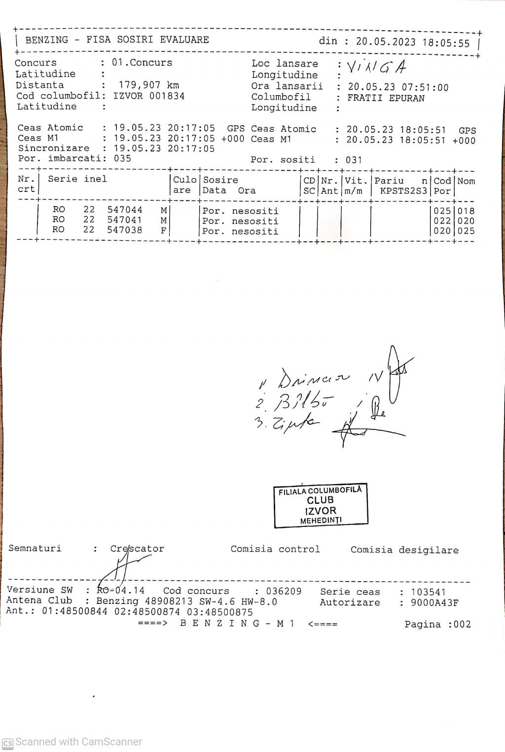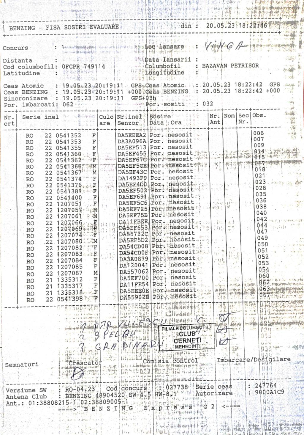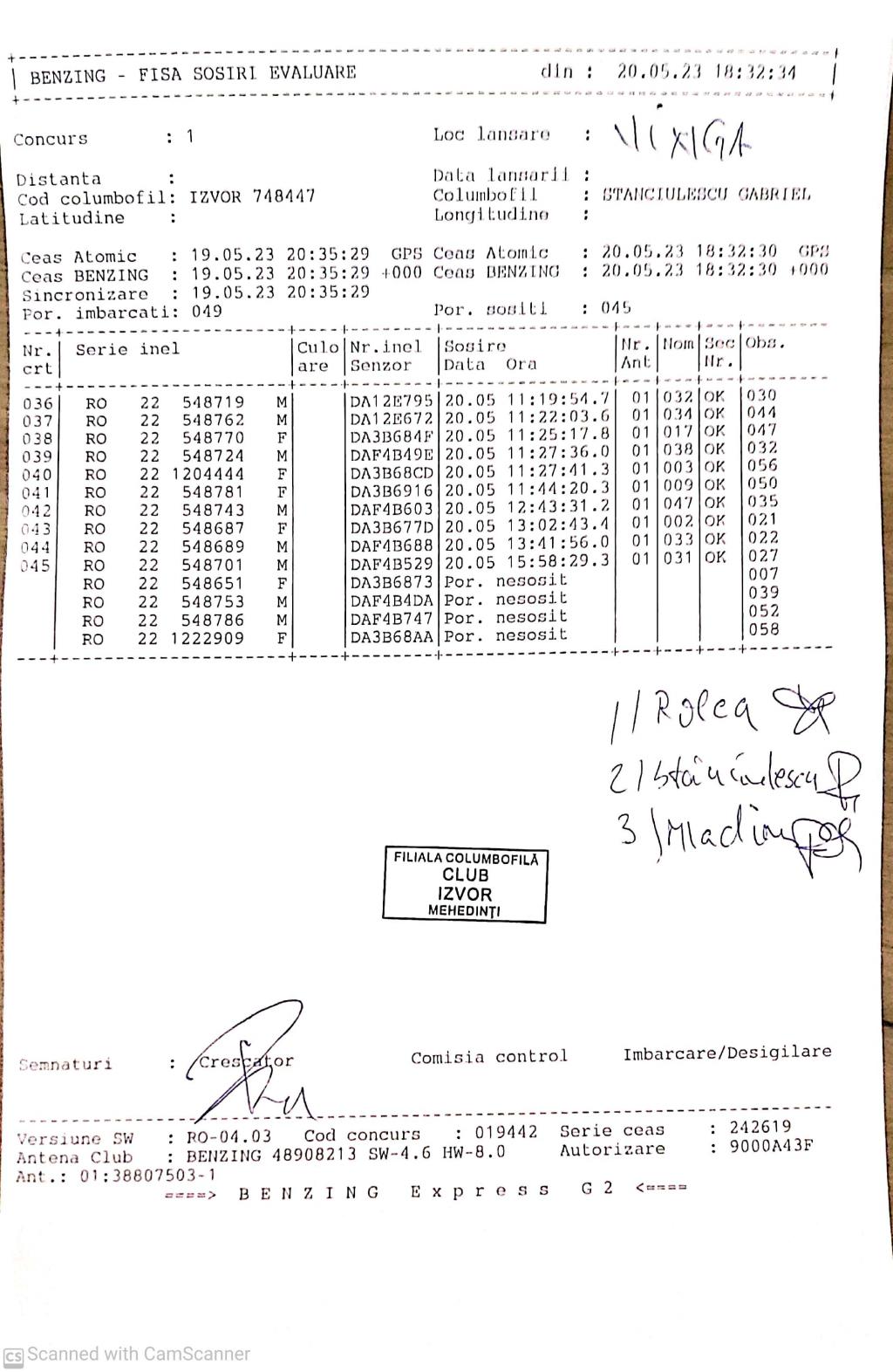 | 117 | Zaharescu Mirel | MH875 | BEN | Izvorul Birzii |