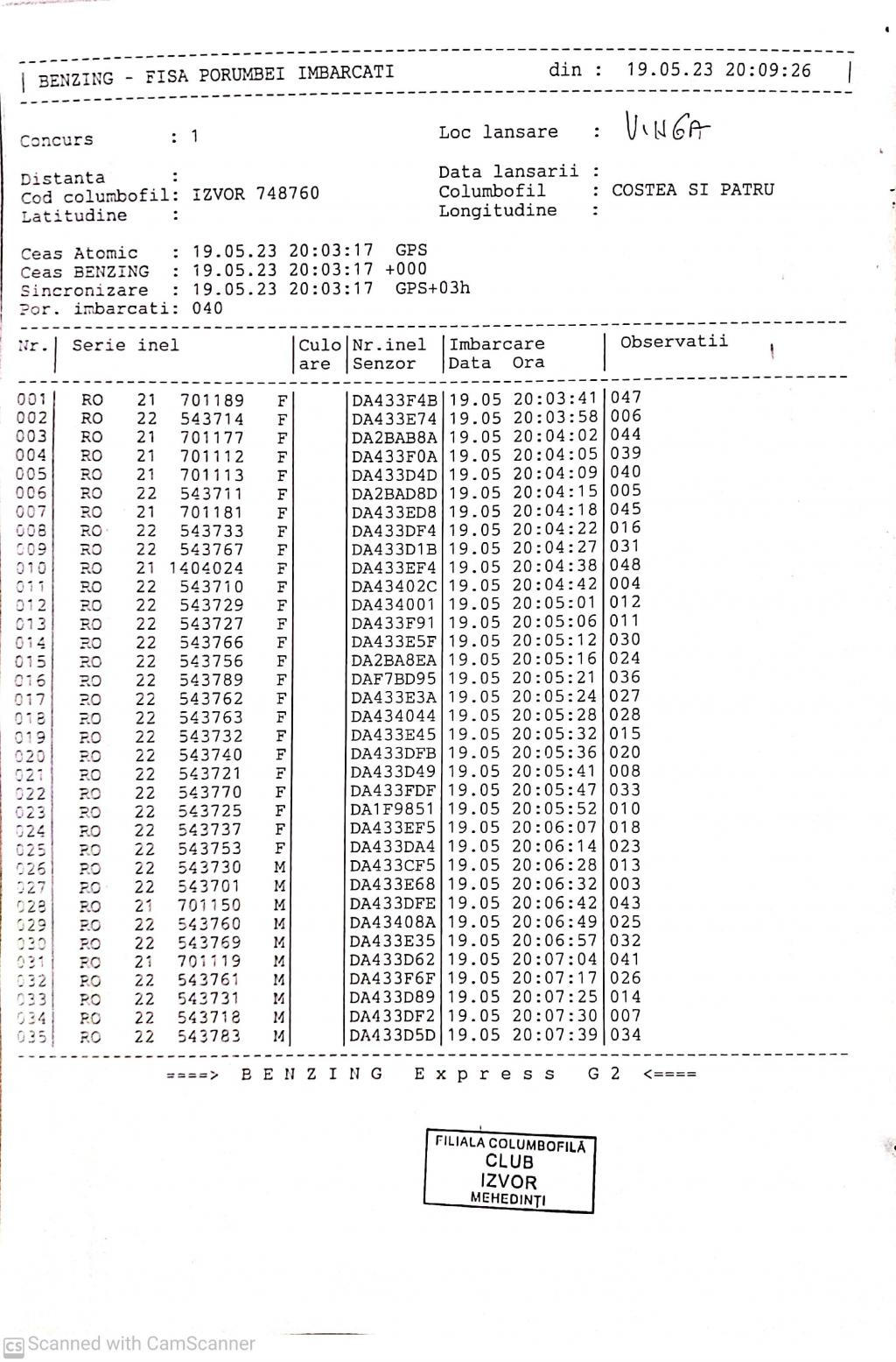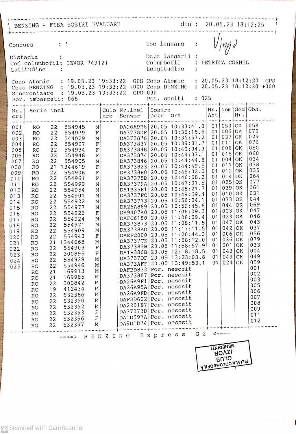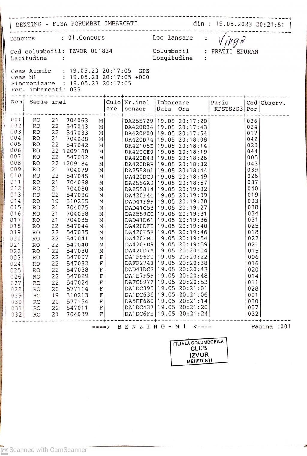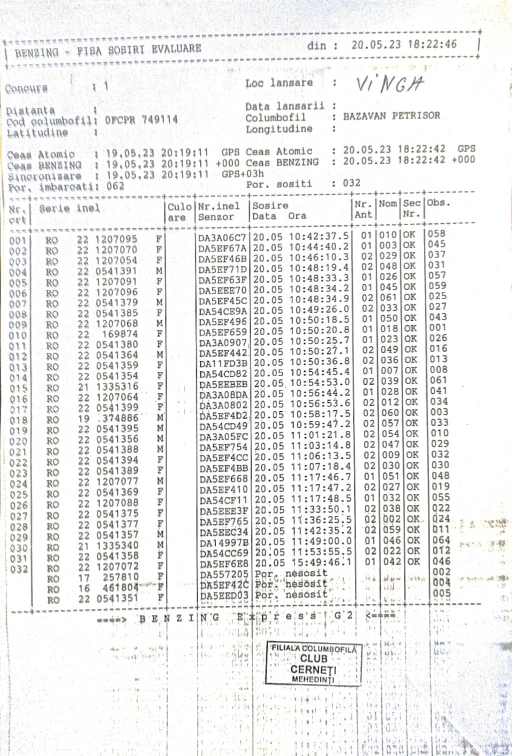 | 117 | Zaharescu Mirel | MH875 | BEN | Izvorul Birzii |