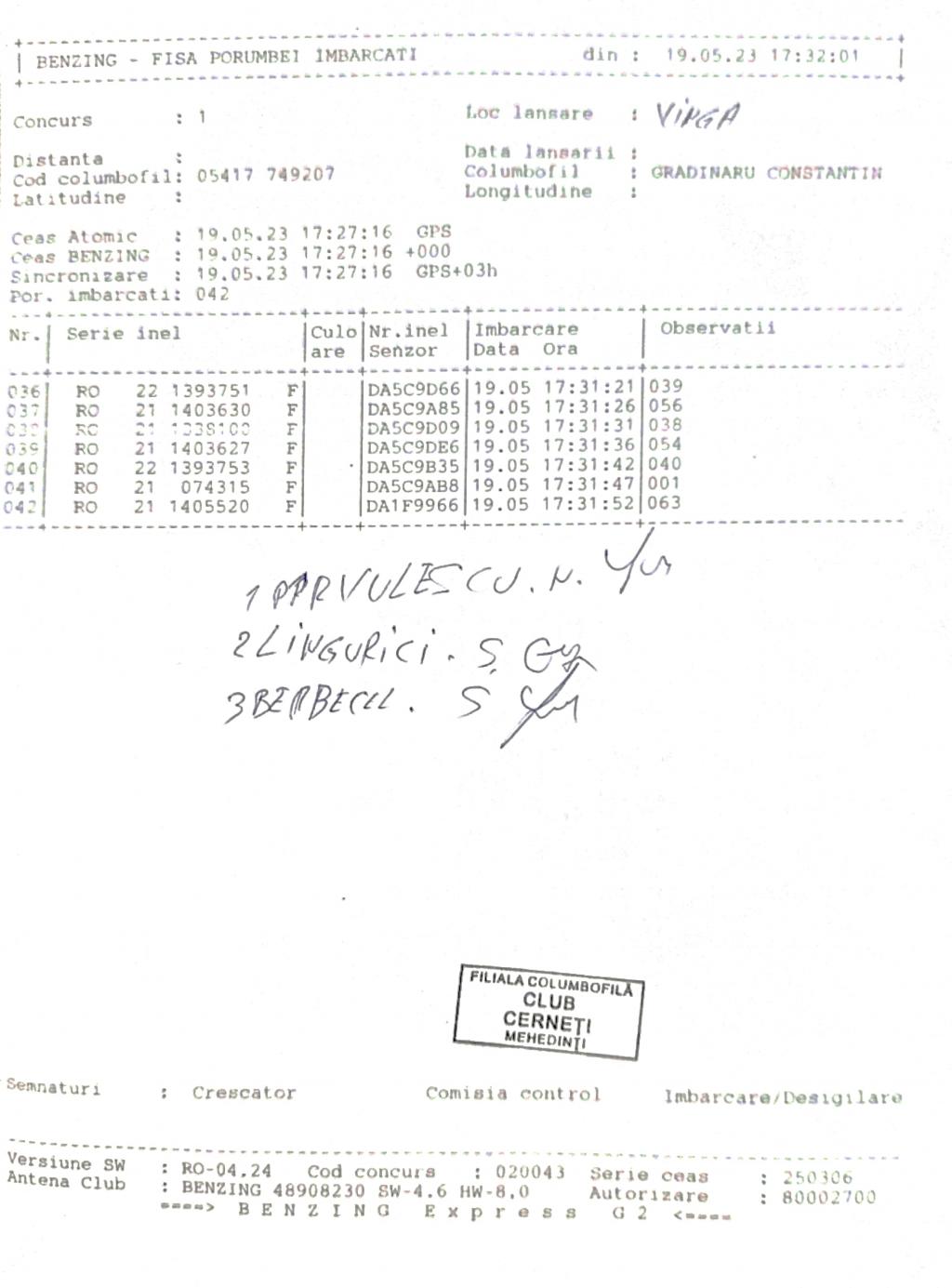 | 41 | Ghiorghita Viorel | MH987 | TOP | Cerneti |