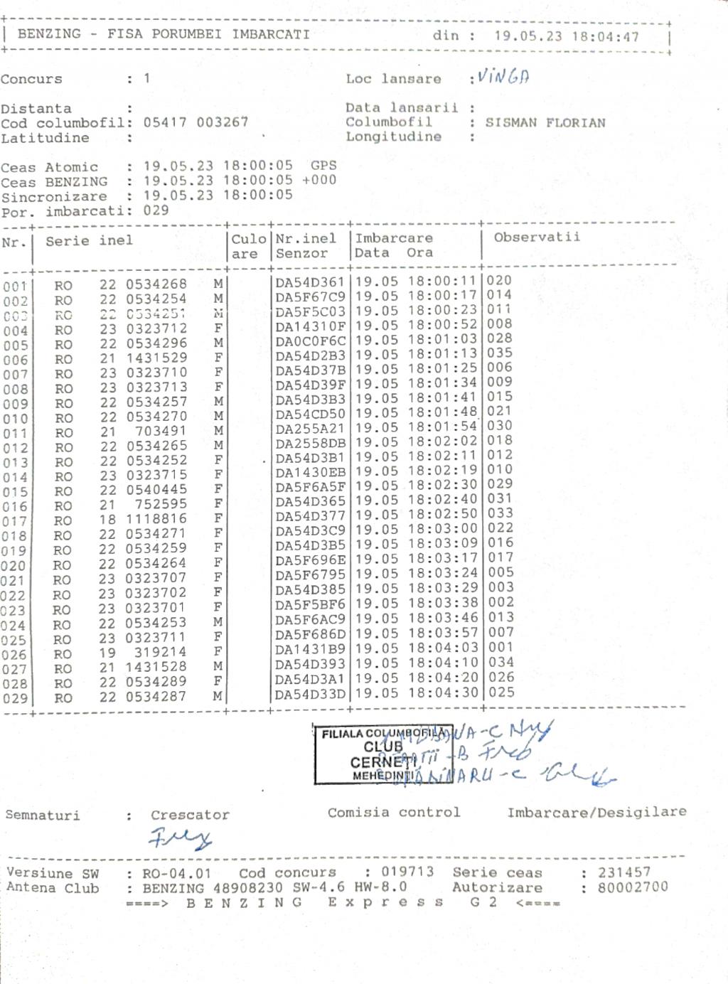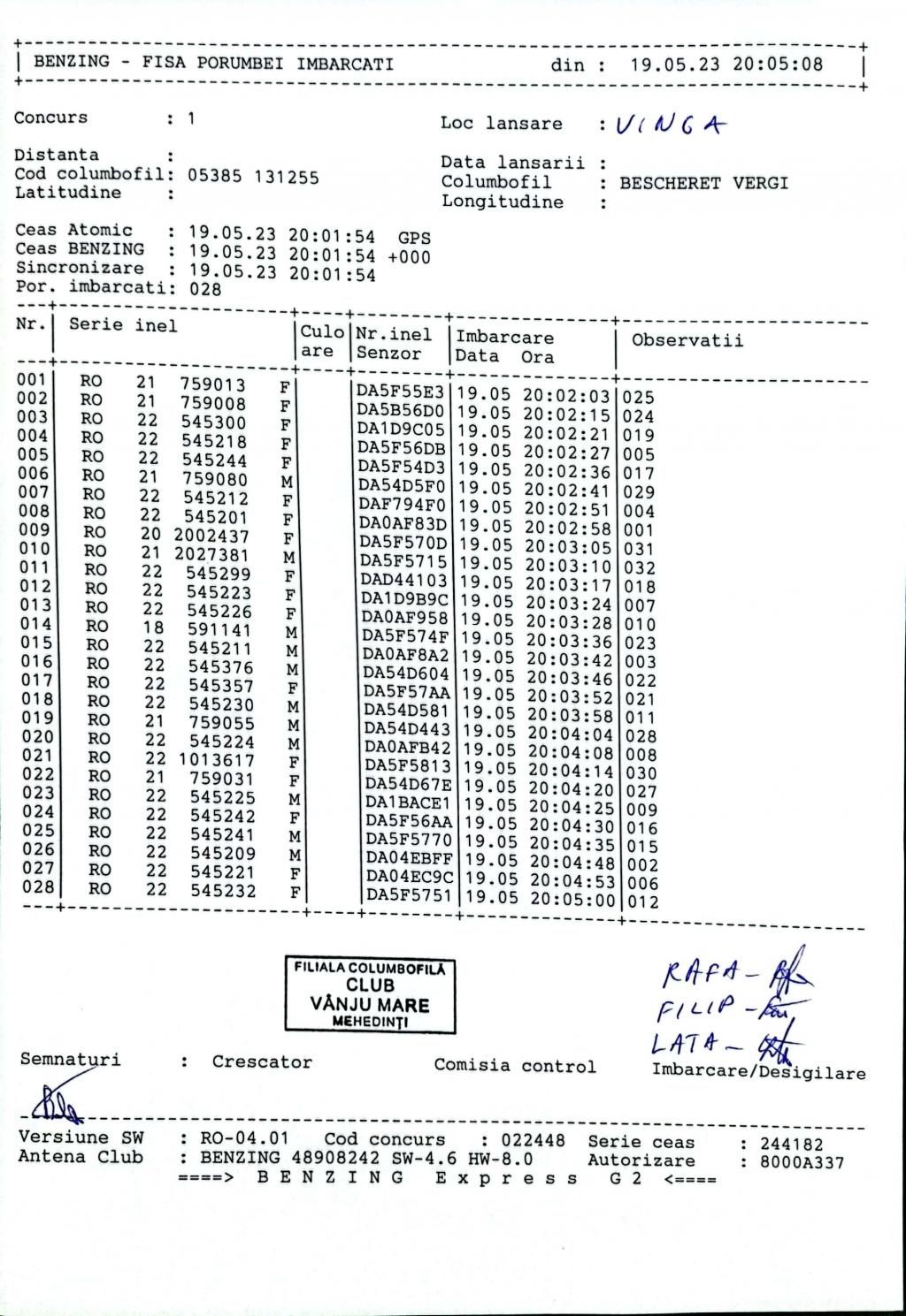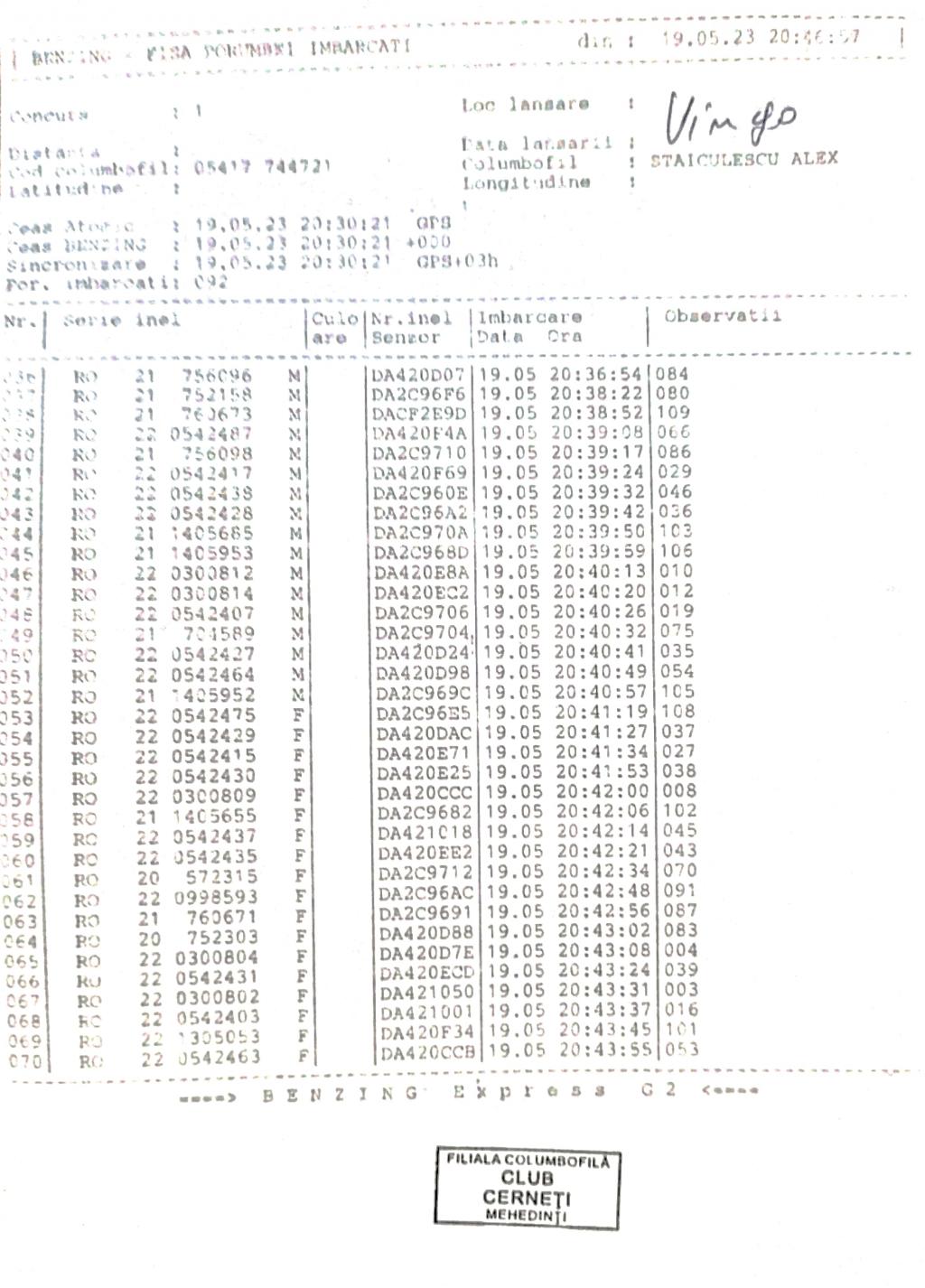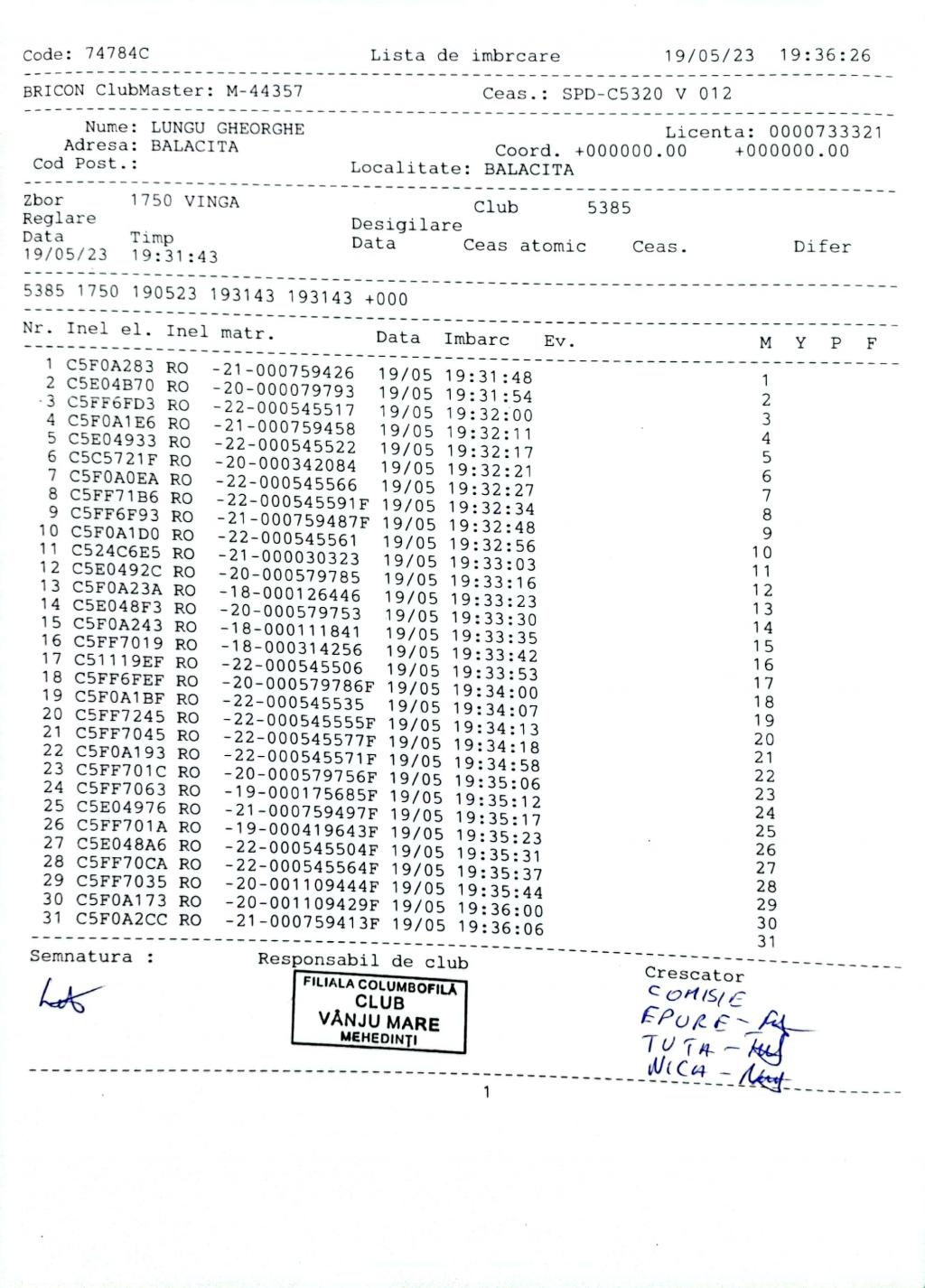 | 186 | Ureche Daniel Si Rochian Bebe | MH1481 | TOP | Vinju Mare |