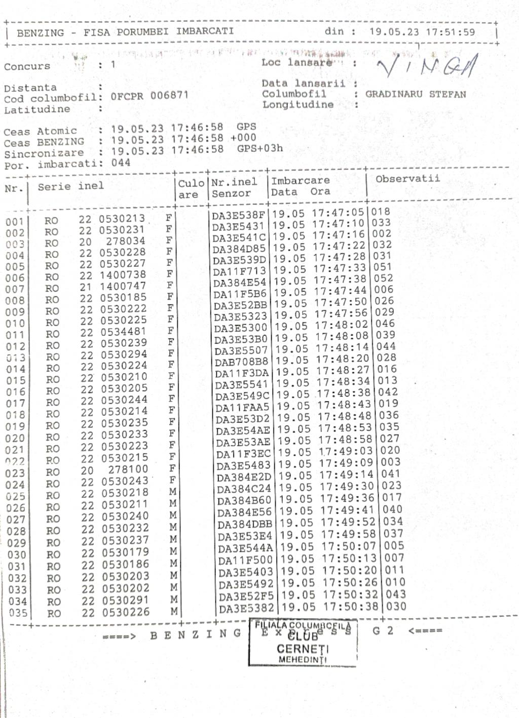 | 48 | Grigorie Catalin | MH923 | BEN | Cerneti | [IMB P0] [IMB P1] | [DES P0] [DES P1] |