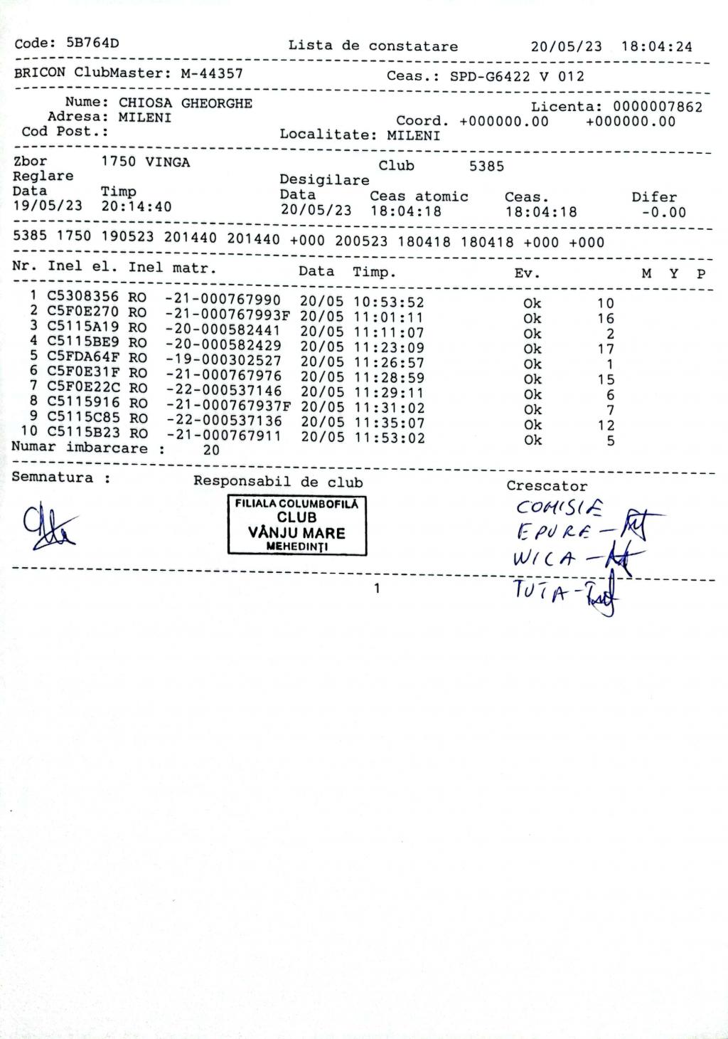 | 60 | Popa Constantin Cristian | MH1173 | TOP | Cerneti |