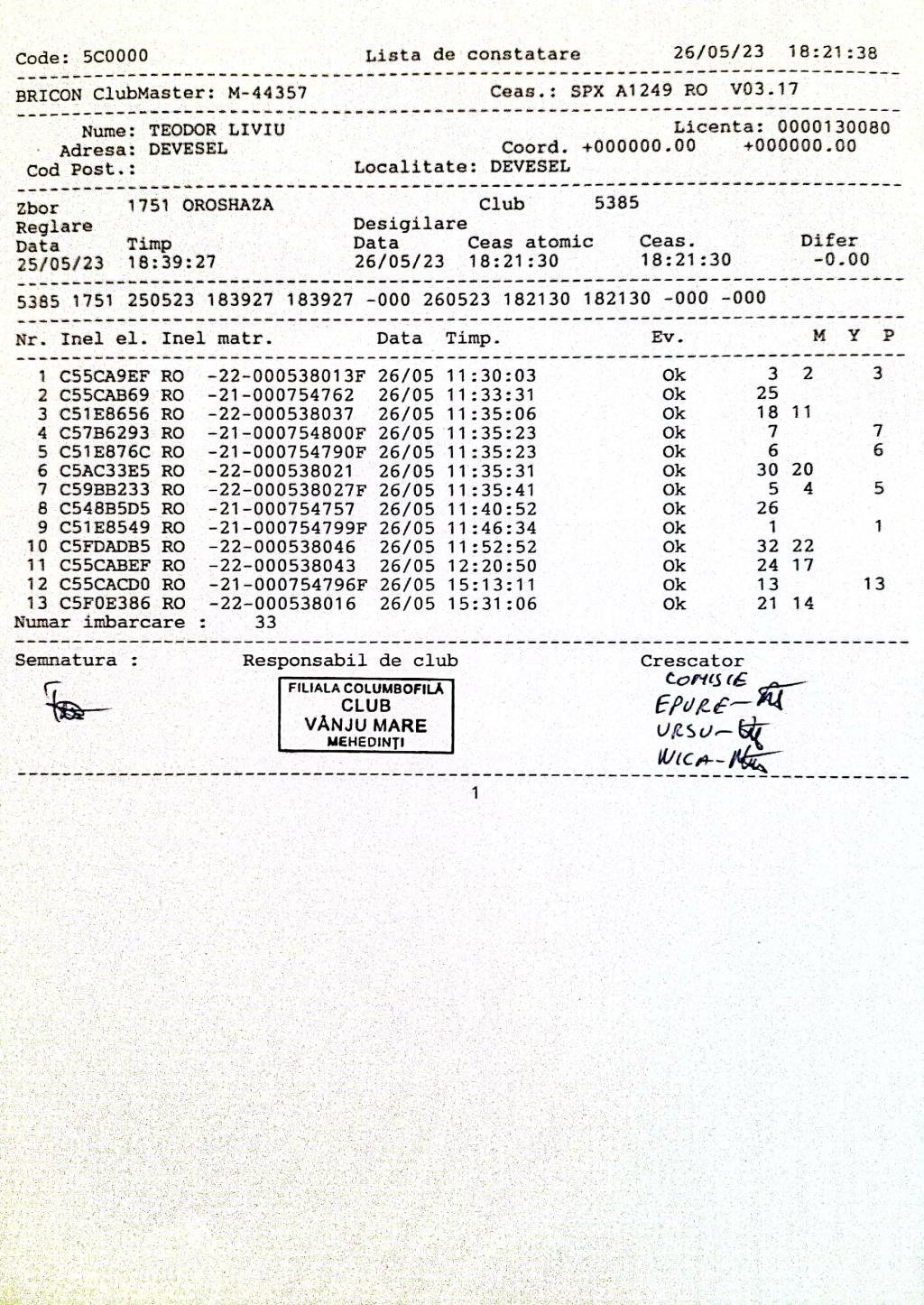 | 54 | Cherescu Mihai | MH1206 | TOP | Izvorul Birzii |