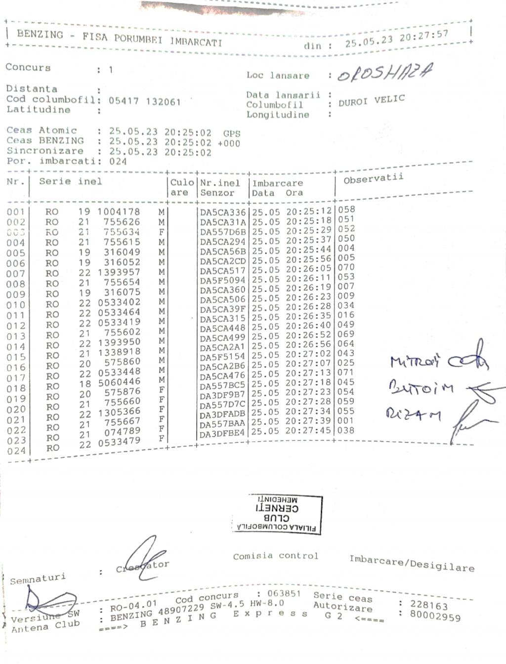 | 95 | Munteanu Marius Florinel | MH1165 | TOP | Strehaia |