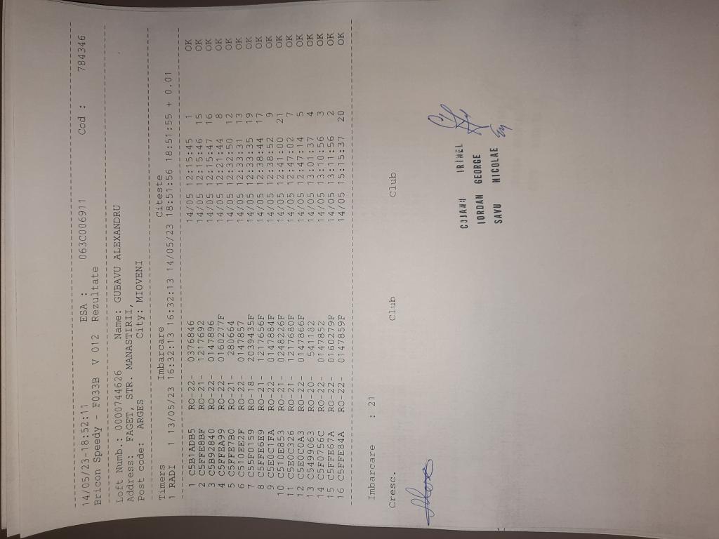 | 12 | Ciocanea Vigi+alin | AG952 | TOP | Mioveni |