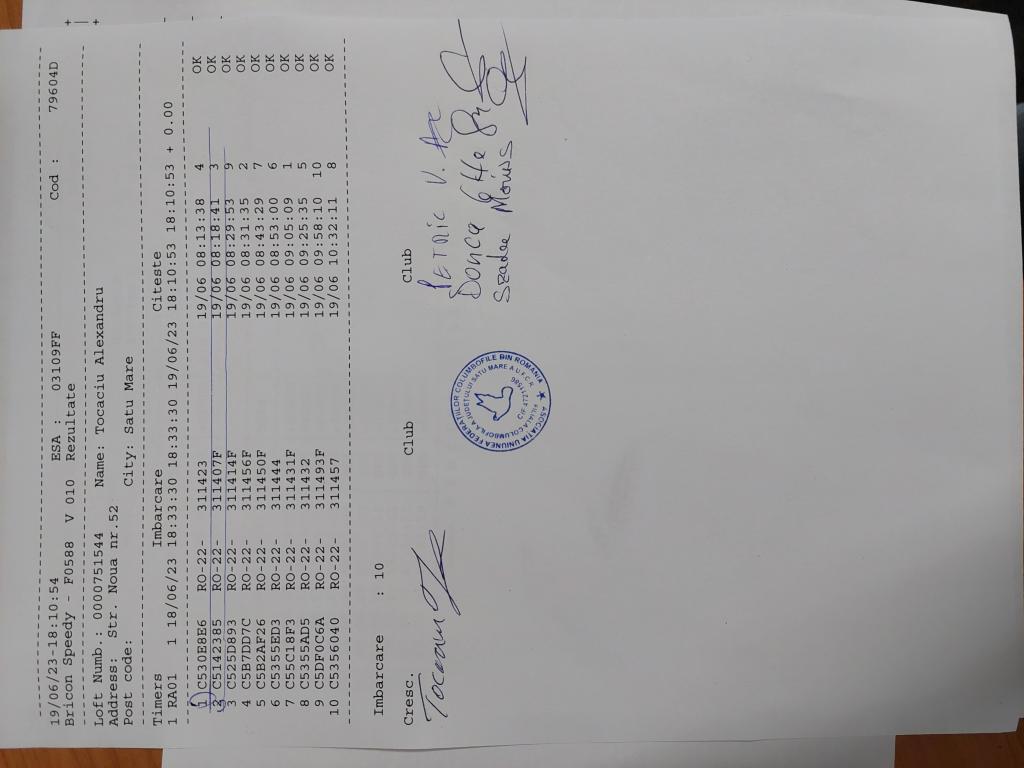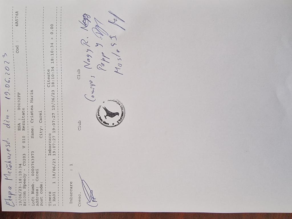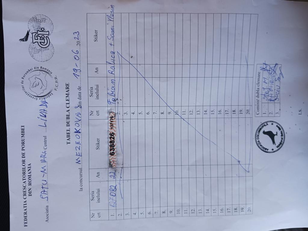 RECLEMARE: [Fabian raluca&s?-mi vlasin] SIGILARE: [MEZOKOVESD 2] [ETAPA MEZOKOVESD 2 SIGILARE] RECLEMARE: [Reclemare porumbei 138674-2021,5330-2021,5395-2021,crescator Marculescu Adrian,etapa Mezokovesd din 19.06.2023] SIGILARE: [SIGILARE MASINA CENTRU SM] [Sosire centru masina Carei] |