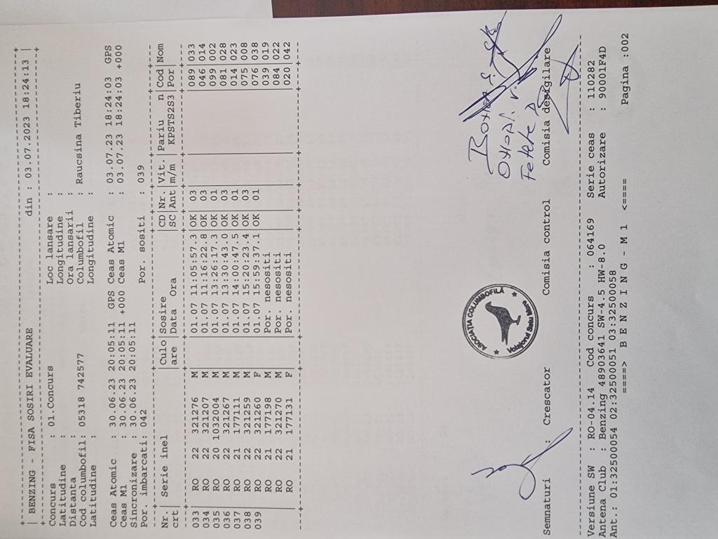 RECLEMARE: [Fabian raluca&sami vlasin] SIGILARE: [Etapa MEZOKOVESD 3] [ETAPA MEZOKOVESD 3 SIGILARE] RECLEMARE: [Reclemare porumbel 150225 de 2021,etapa Mezokovesd,crescator Nagy Olimpiu] [Reclemare porumbei 138674 si 5330 de 2021,etapa Mezokovesd,crescator Marculescu Adrian] SIGILARE: [Sosire centru masina Carei] [Sigilare masina centrul Satu Mare ] |
