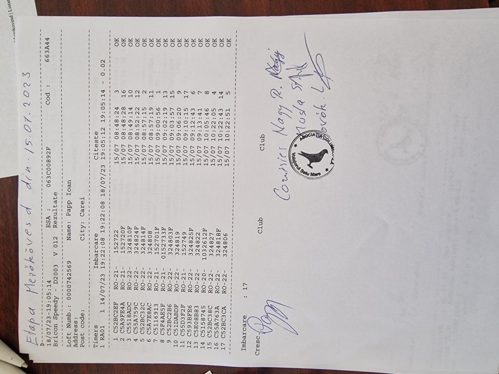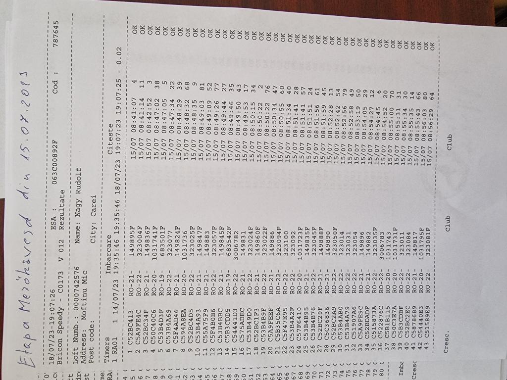 RECLEMARE: [Mezokovesd Fabian Raluca&Sami Vlasin] SIGILARE: [Mezokovesd 15 /07/2023] [Etapa Mez?kövesd sosire ma?in? de la centrul livada ] [Sigilare ma?in? etapa Mezokovesd centrul carei] [Sosire masina Carei la centrul Satu Mare] [Sigilare masina centru Satu Mare etapa Mezokovesd] RECLEMARE: [Reclemare porumbel 5330 din 2021,crescator Marculescu Adrian] |