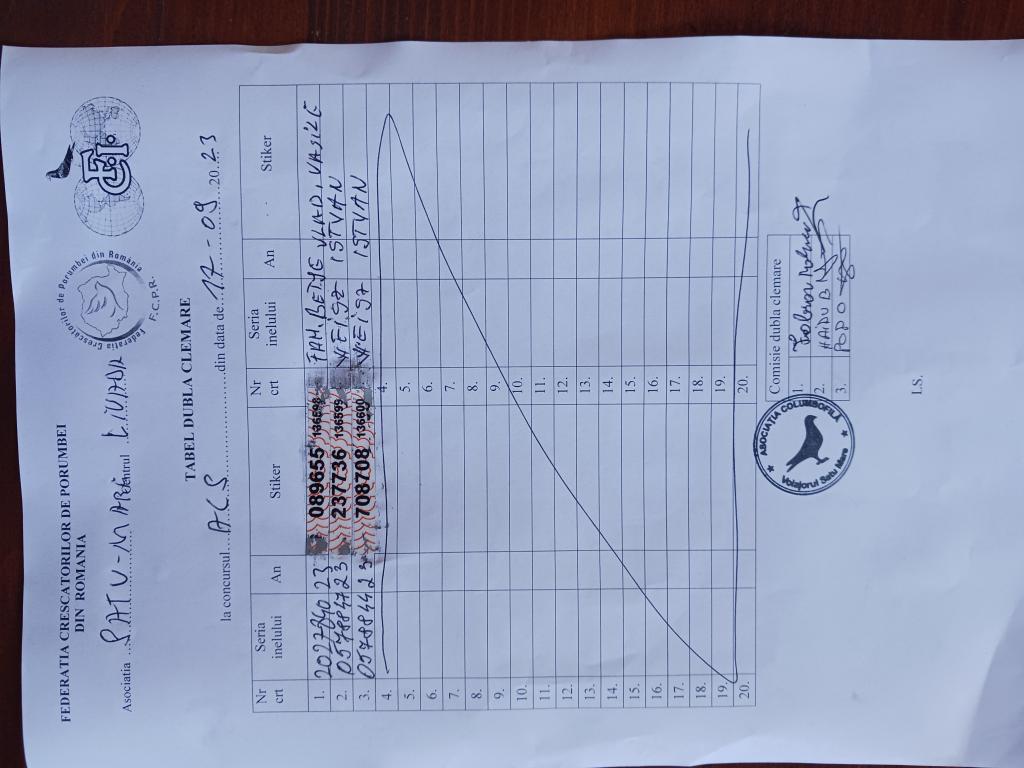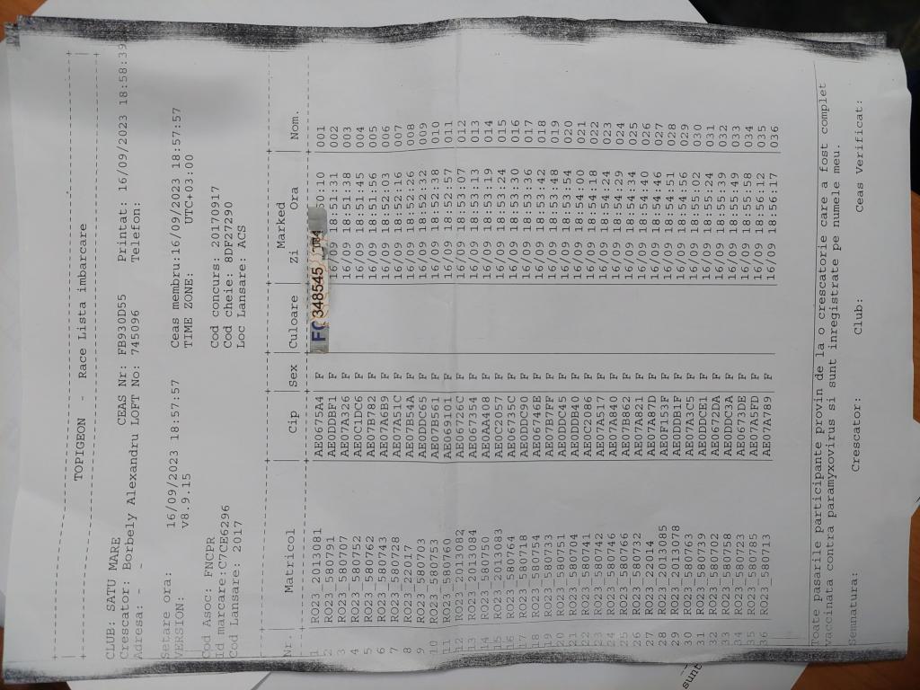 RECLEMARE: [Rechemare fam.betye vasile] [Rechemare weisz istvan] SIGILARE: [Sigilare ma?ina etapa ACS 3] RECLEMARE: [Reclemare porumbel 571028 2023.crescator Fam NAGY.etapa Acs din 17.09.2023] [Reclemare porumbel 2013081 2023.crescator Borbely Alexandru etapa Acs din 17.09.2023] SIGILARE: [Sosire masina Livada la centrul Satu Mare etapa Acs din 17.09.2023] [Sigilare masina Satu Mare etapa Acs 17.09.2023] |