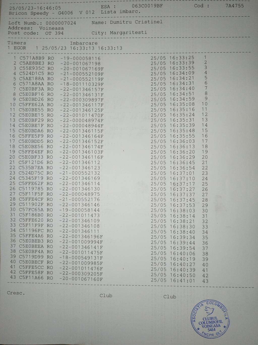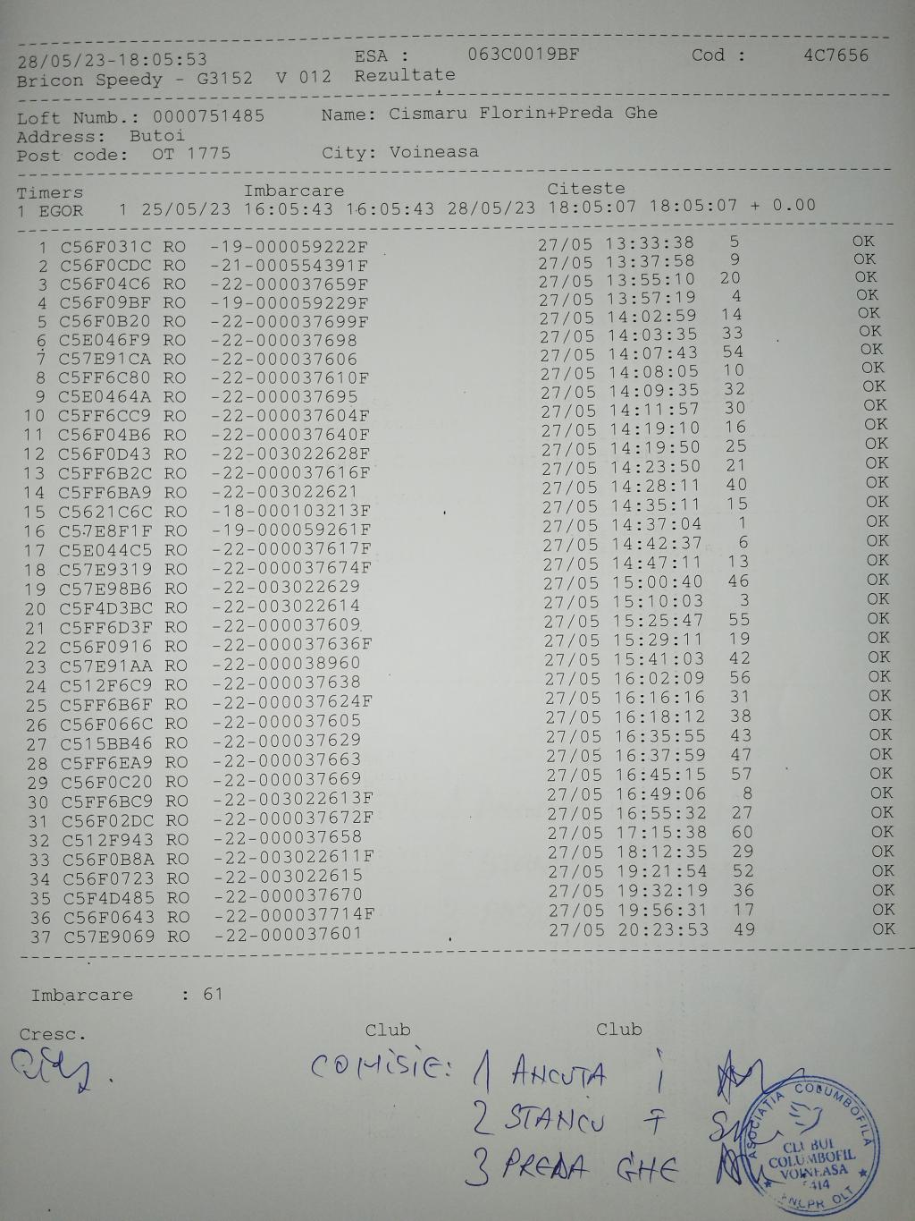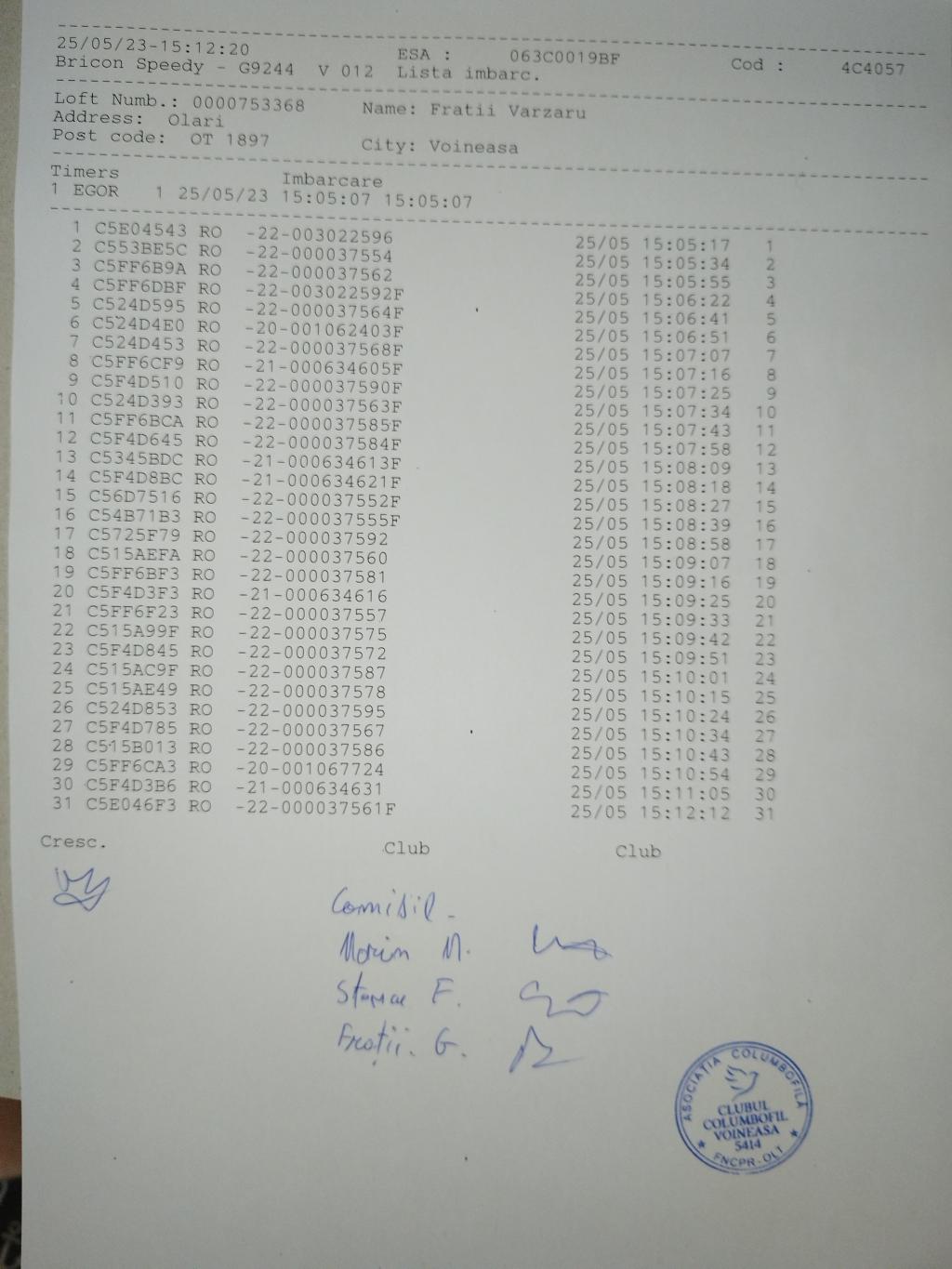 | 356 | Ionescu Florin | OT1685 | BRI | Voineasa | [IMB P0] | [DES P0] |