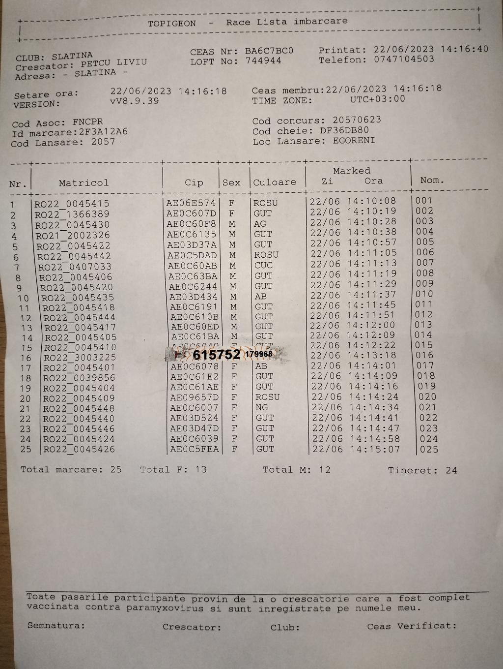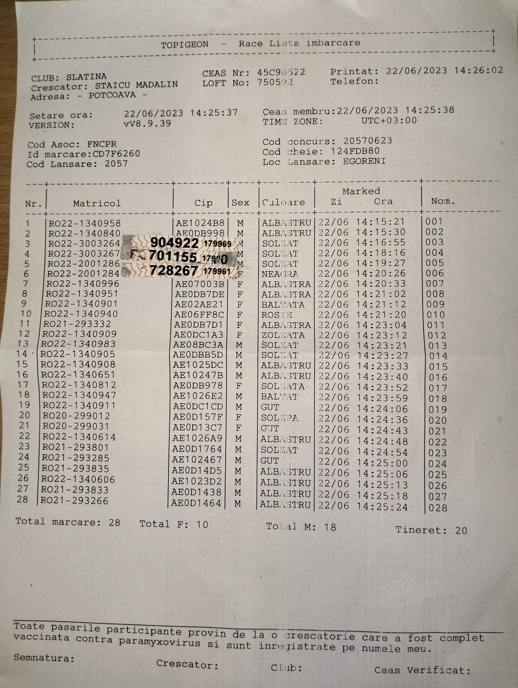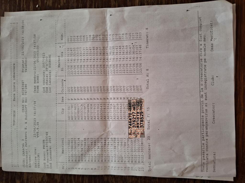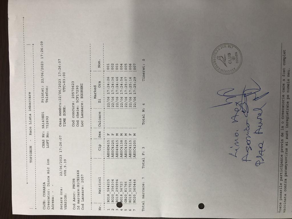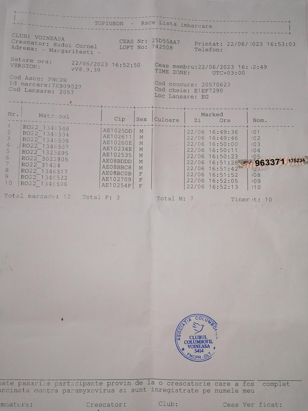 | 52 | Marin Ionut Cosmin | OT558 | TOP | Bals |