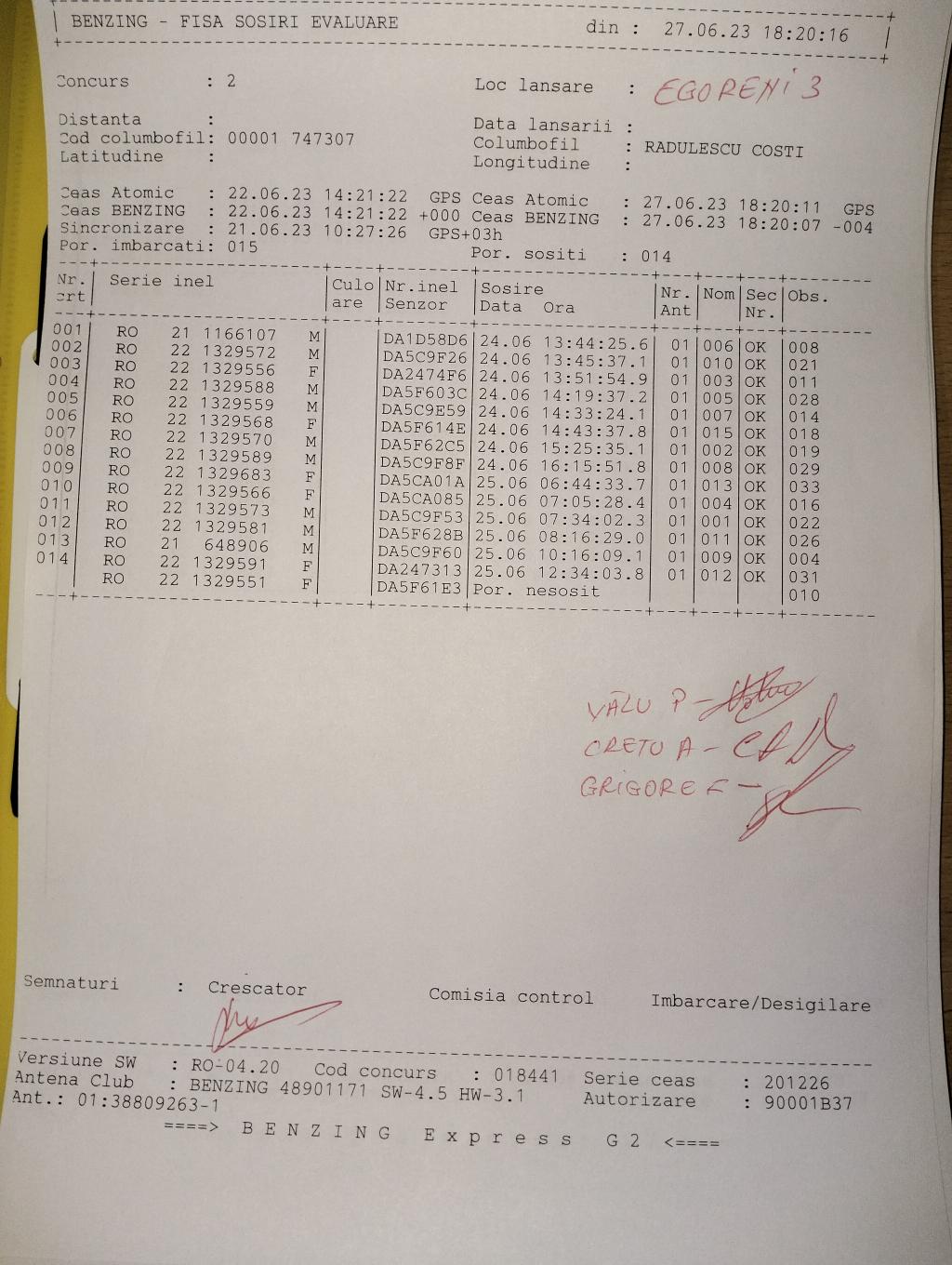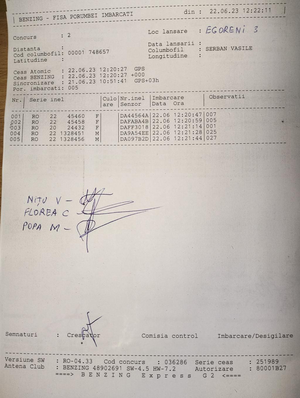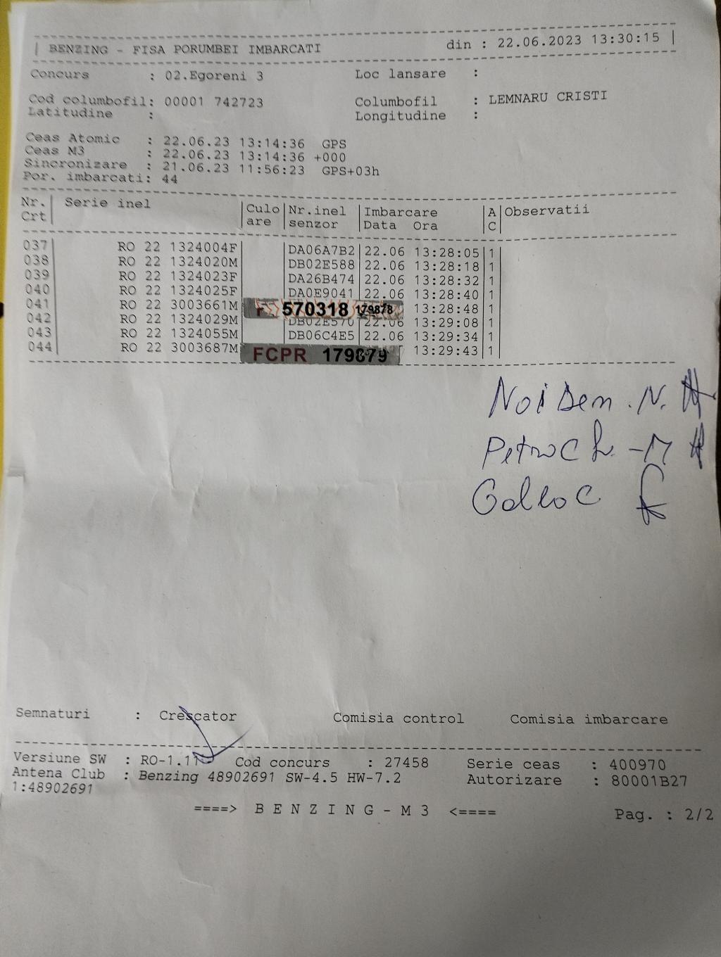 | 224 | Golea Cristian | OT1141 | BEN | Slatina | [IMB P0] | |