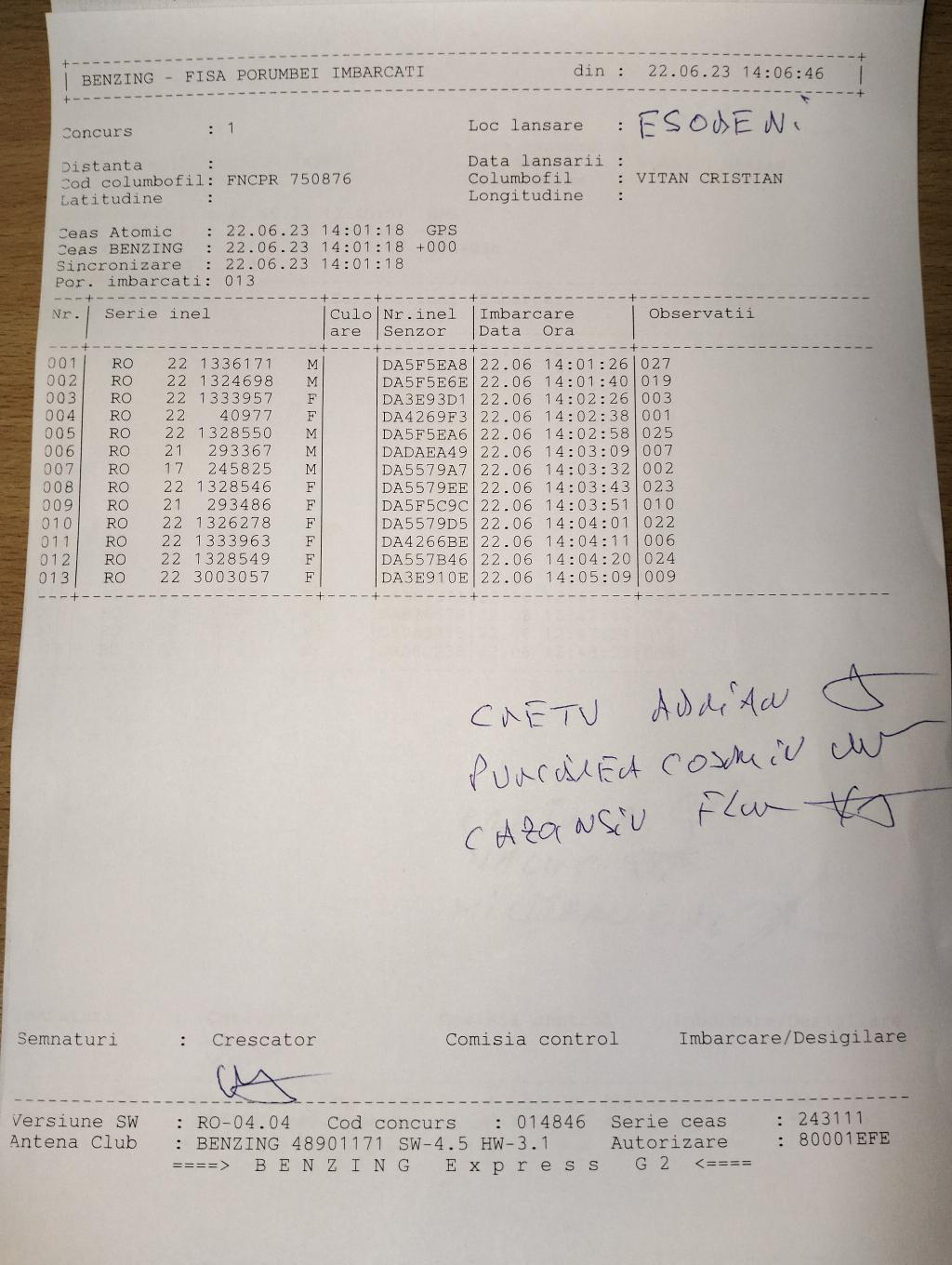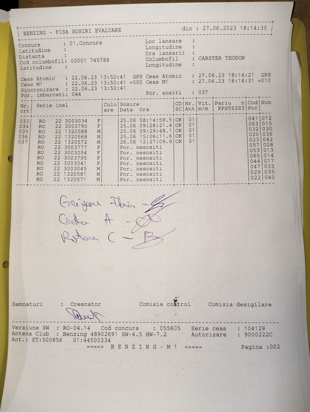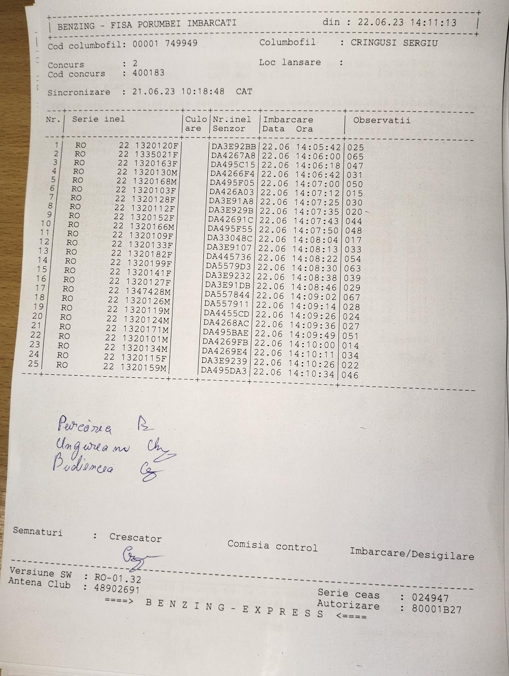 | 38 | Cernatoiu Remus | OT443 | BEN | Bals |