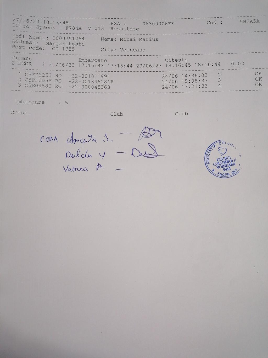| 261 | Streche Marius | OT1866 | BEN | Slatina | [IMB P0] | |