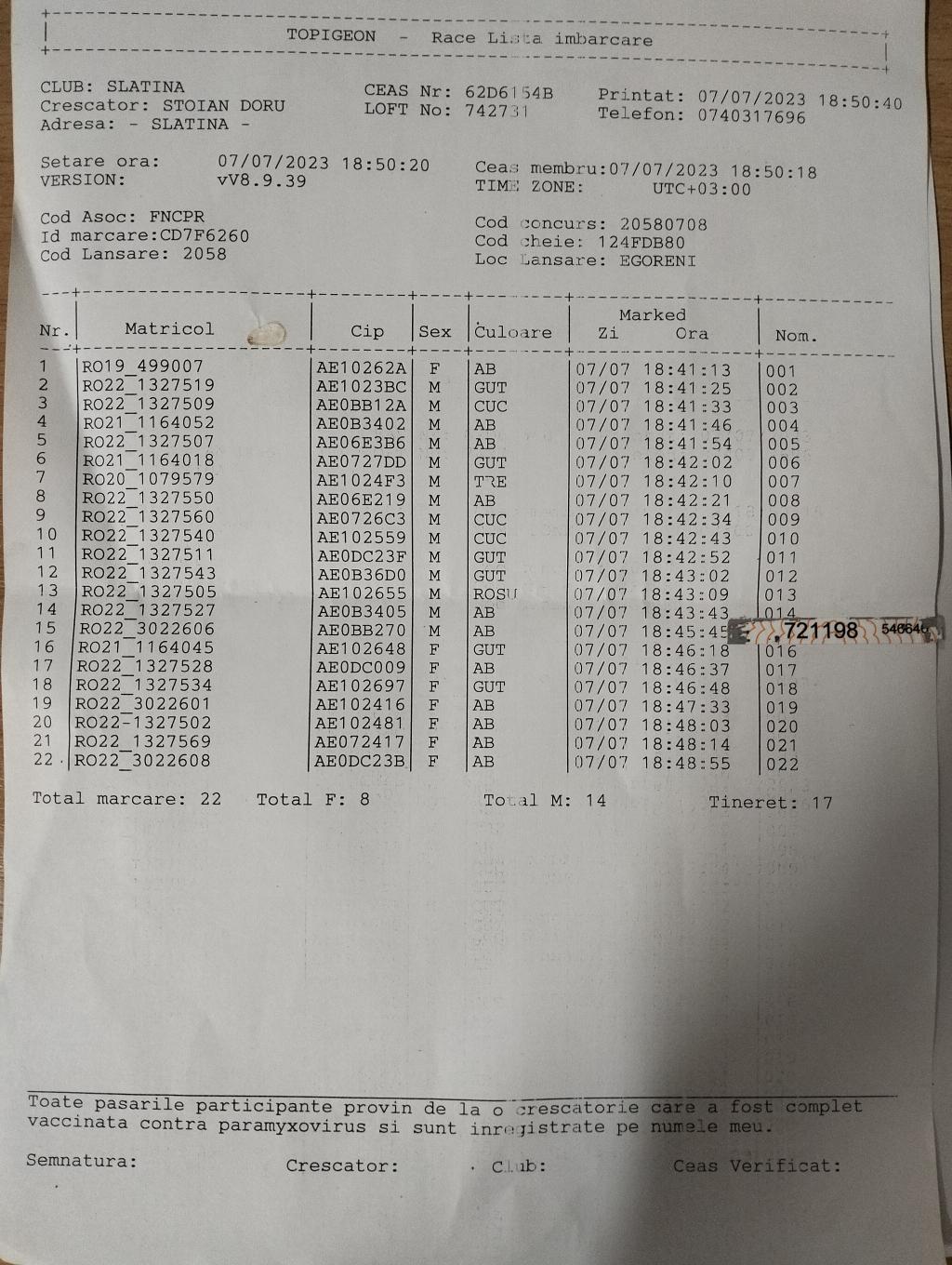 | 79 | Mincu Catalin | OT1709 | TOP | Caracal |