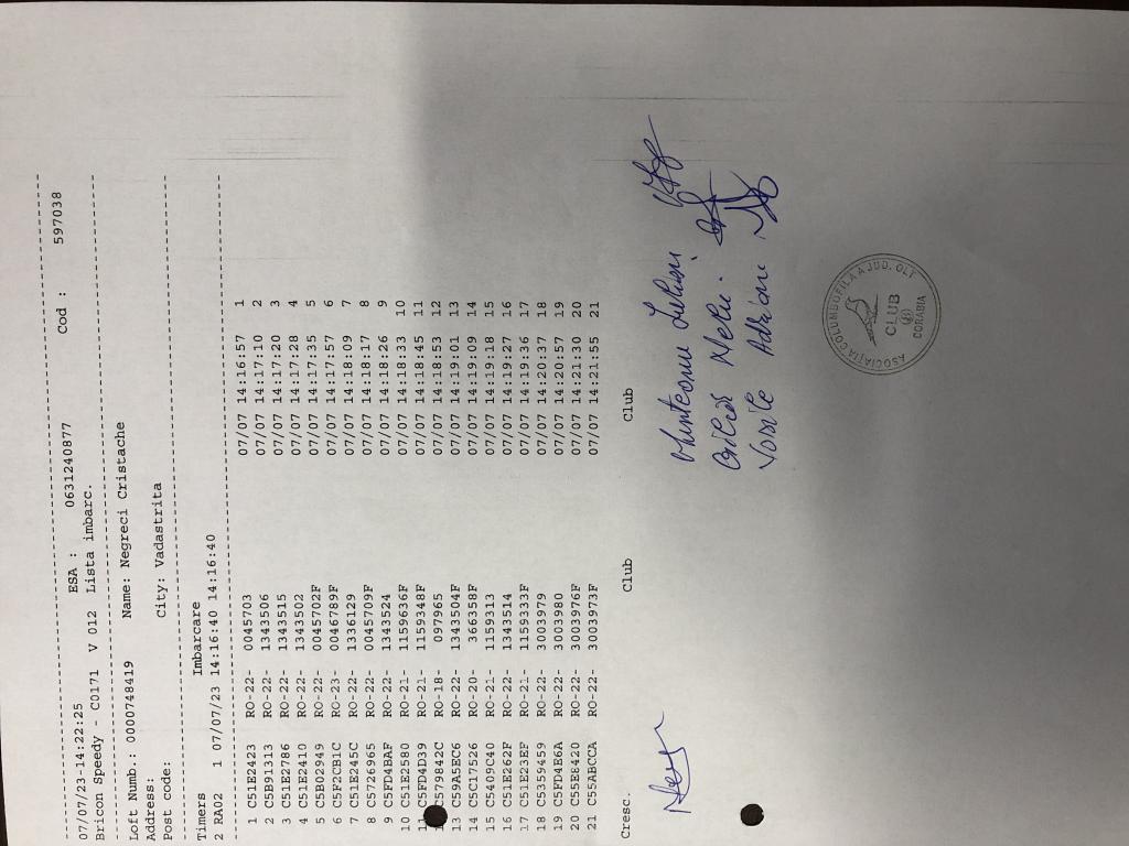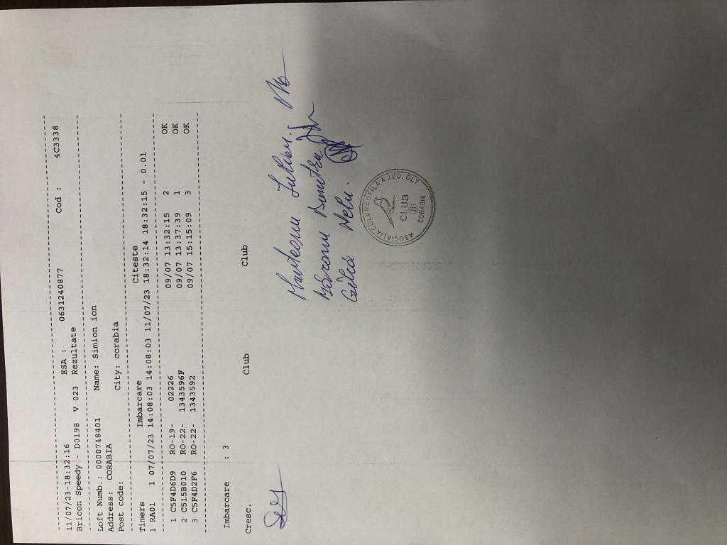 | 217 | Purcarea Cosmin | OT1736 | BEN | Slatina |