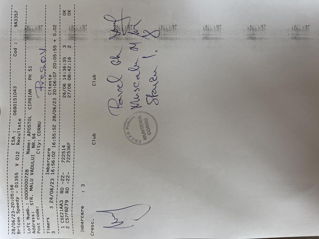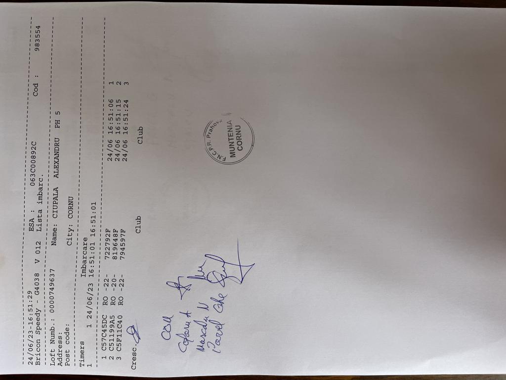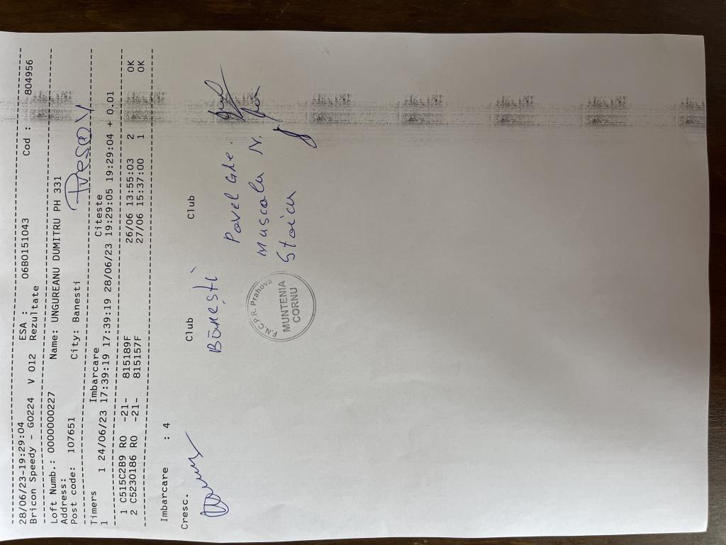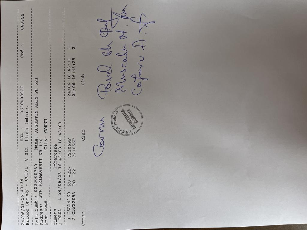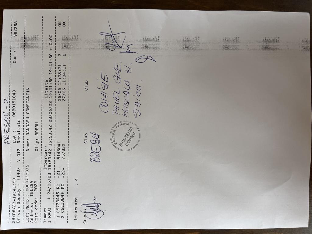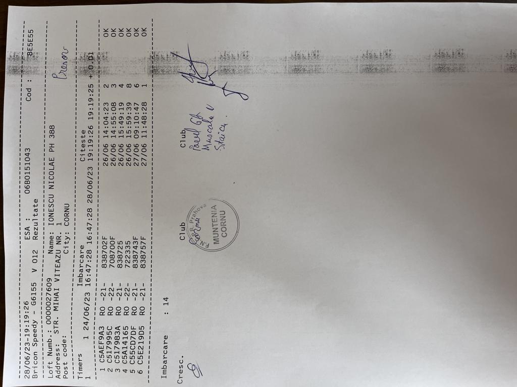 | 56 | Sandu Pigeons Team | PH10611 | BRI | Plopeni |