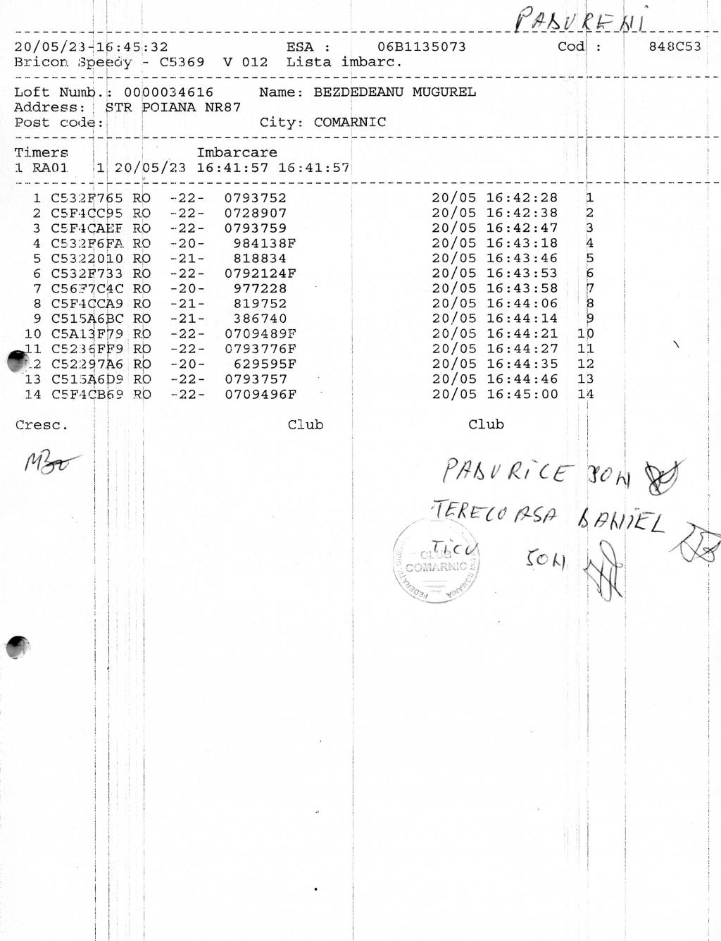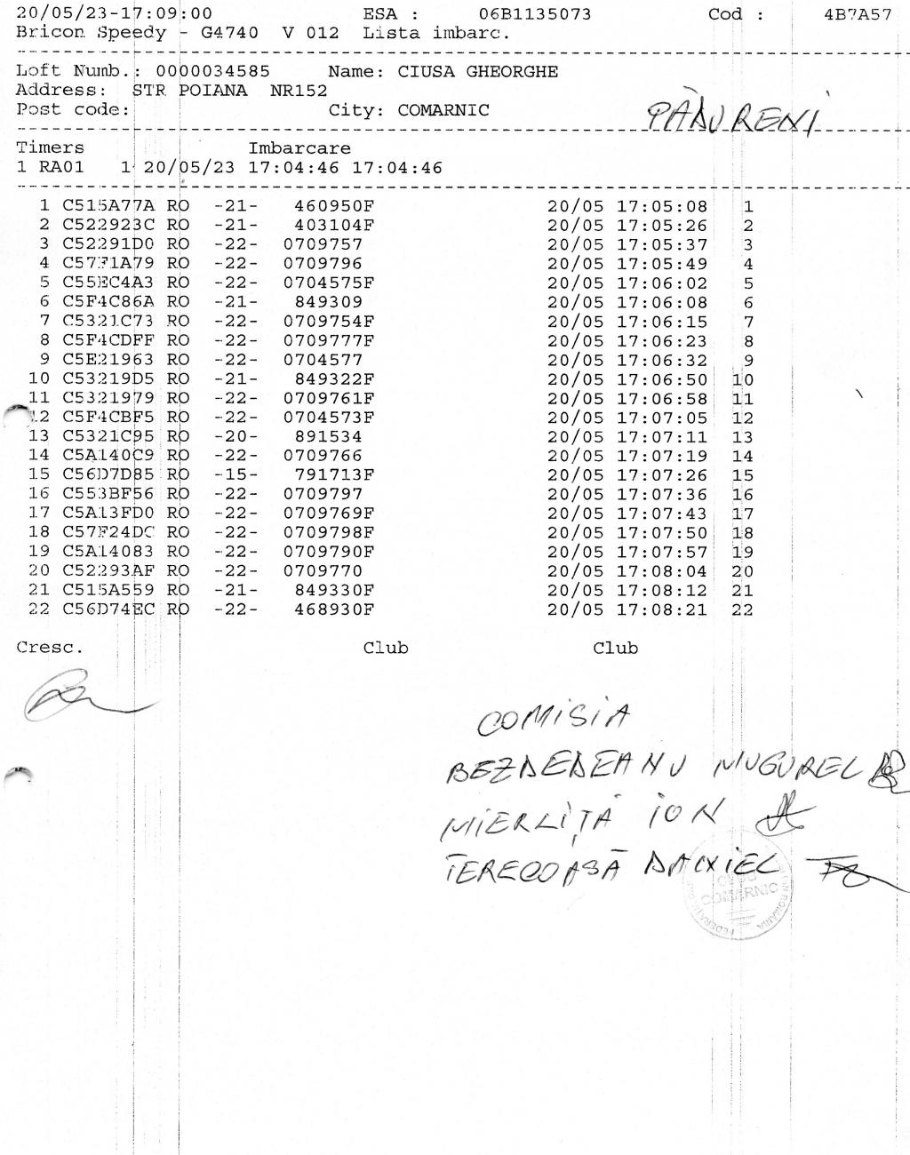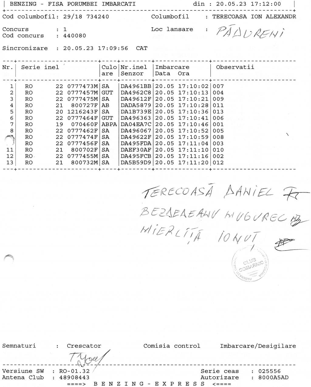 | 77 | Terecoasa Daniel | PH10503 | BRI | Comarnic | [IMB P0] | [DES P0] |