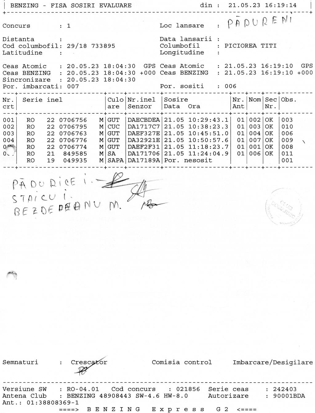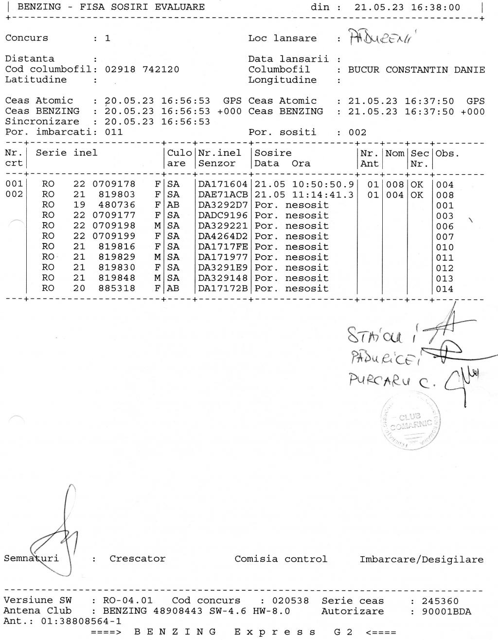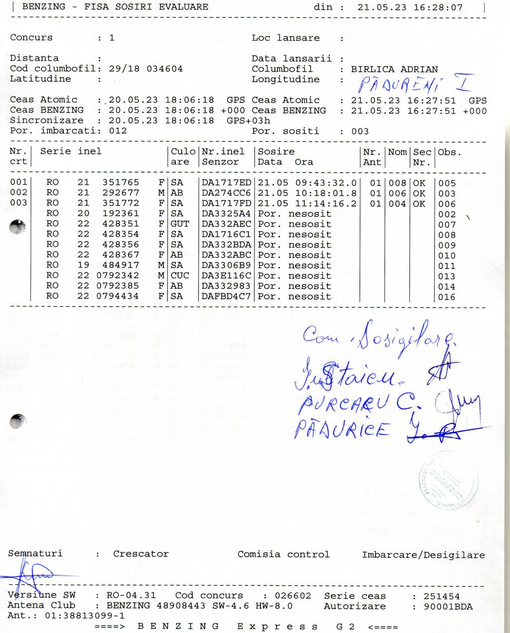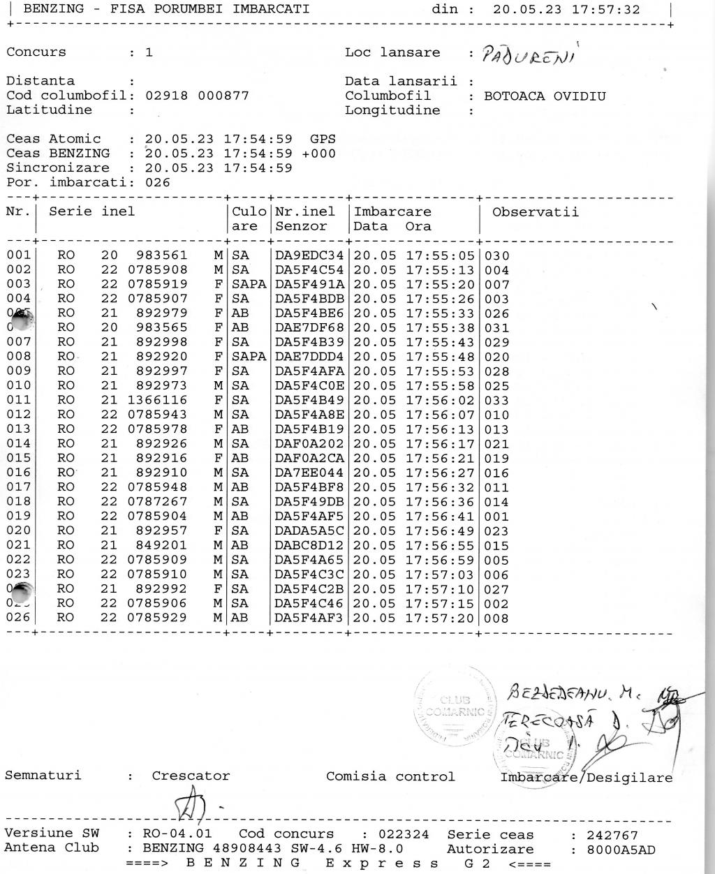 | 26 | Bidiuta Catalin | PH10818 | BEN | Comarnic | [IMB P0] | |