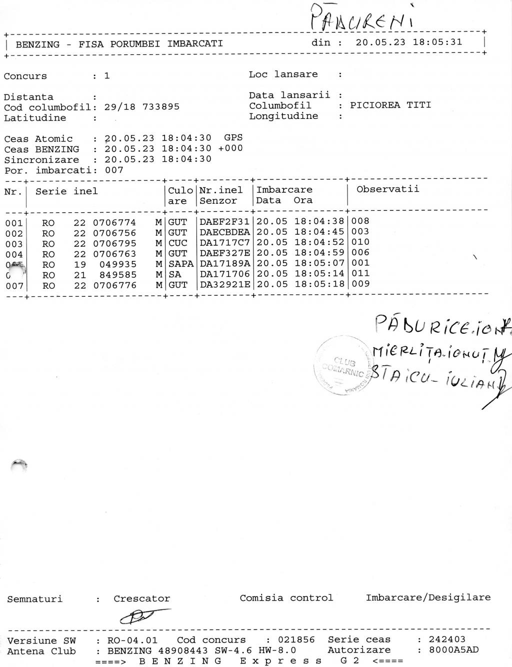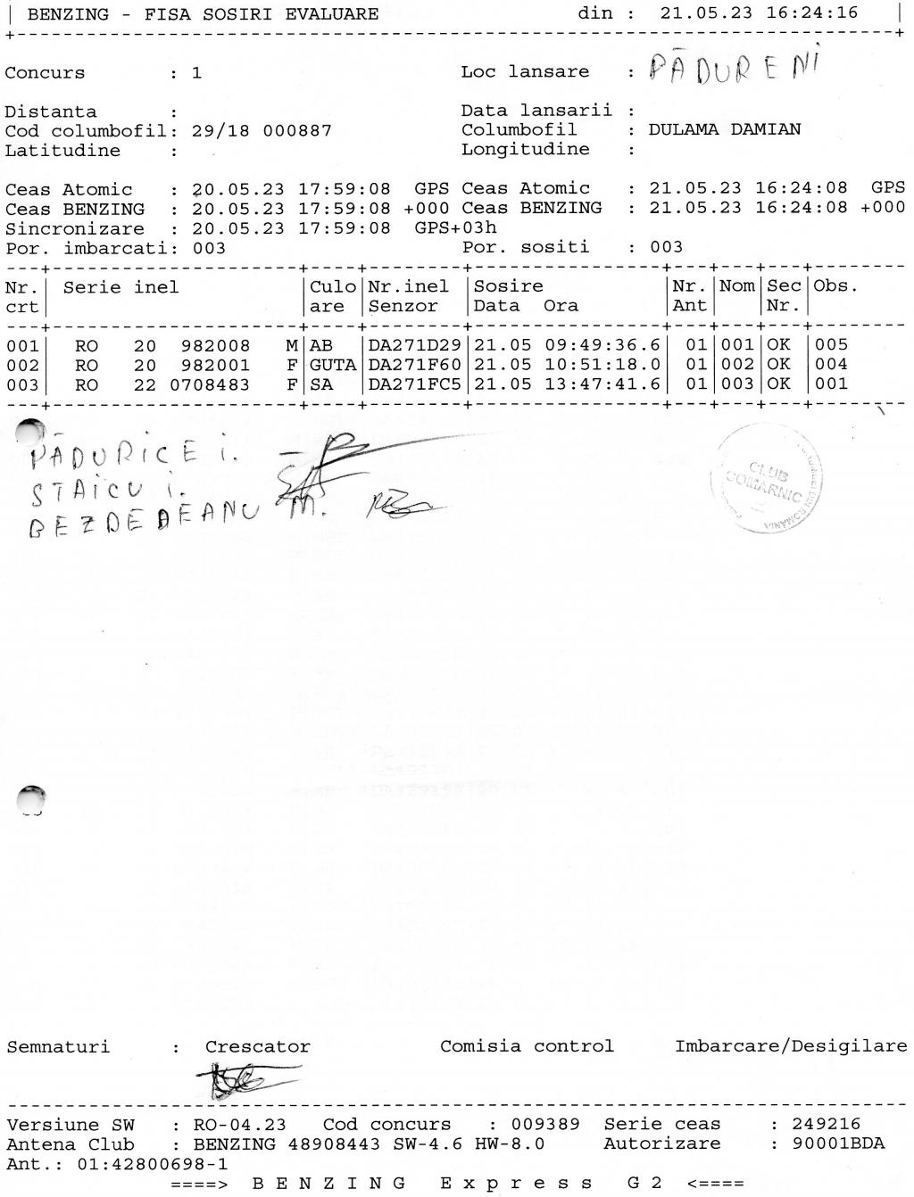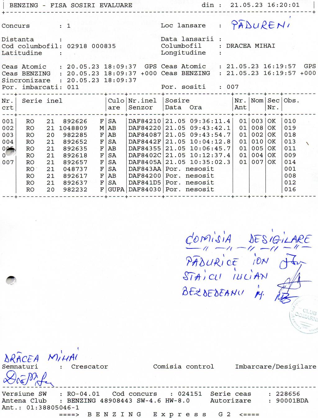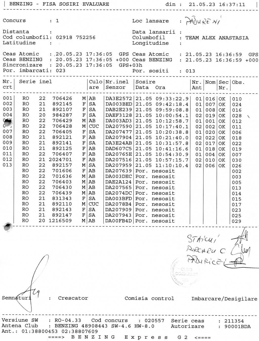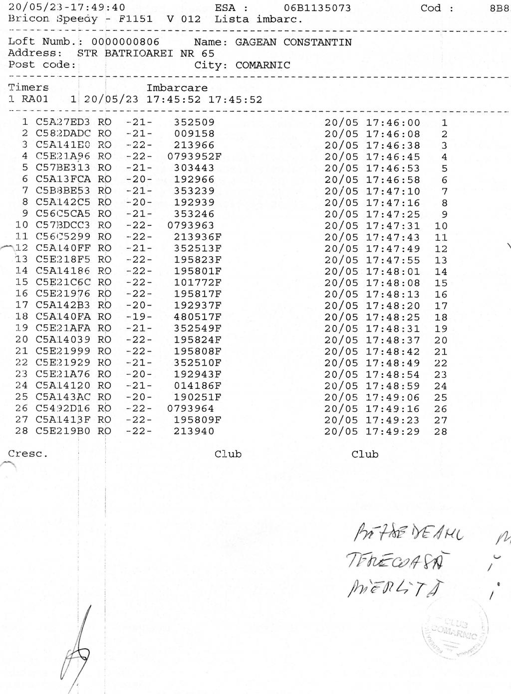 | 26 | Bidiuta Catalin | PH10818 | BEN | Comarnic | [IMB P0] | |