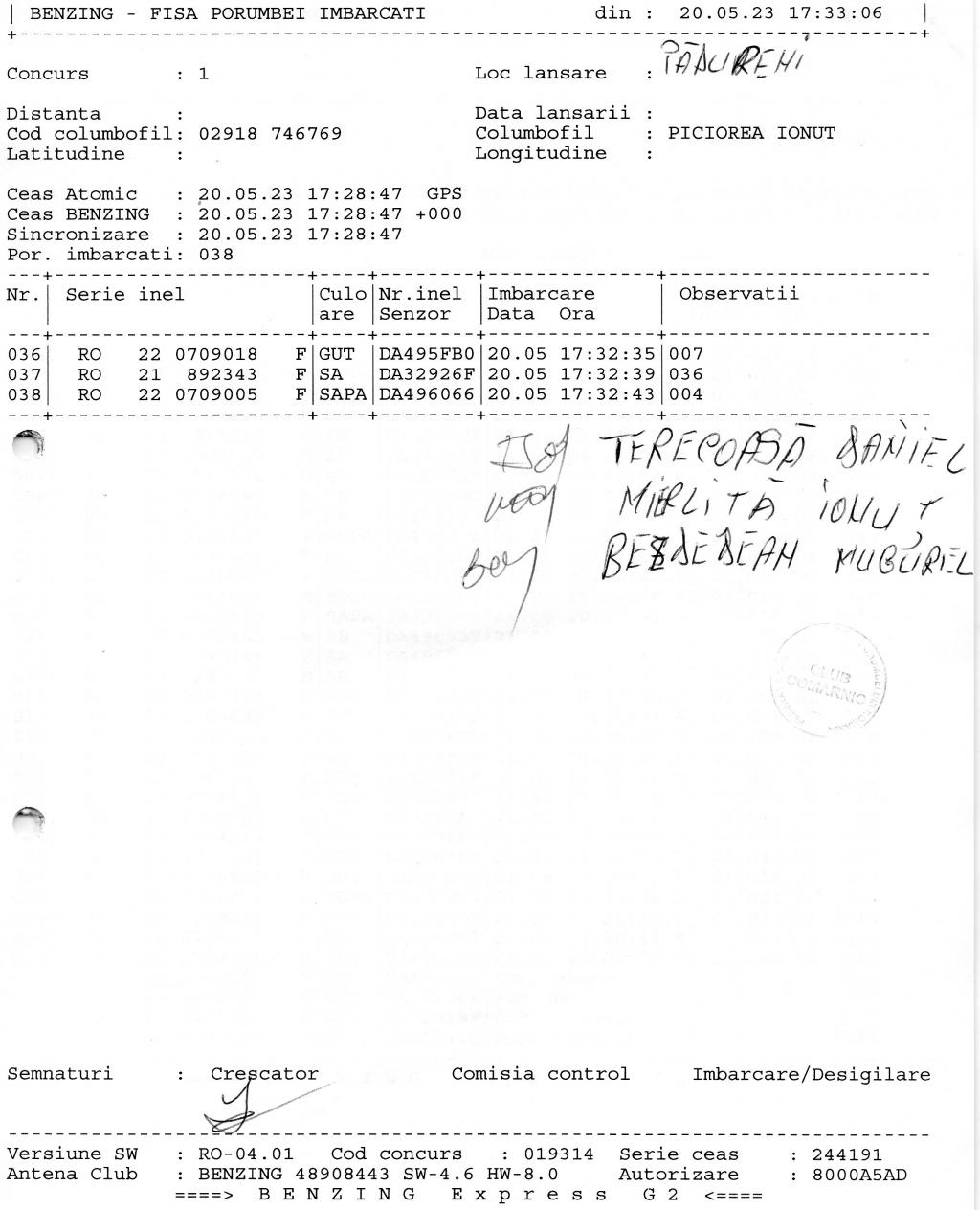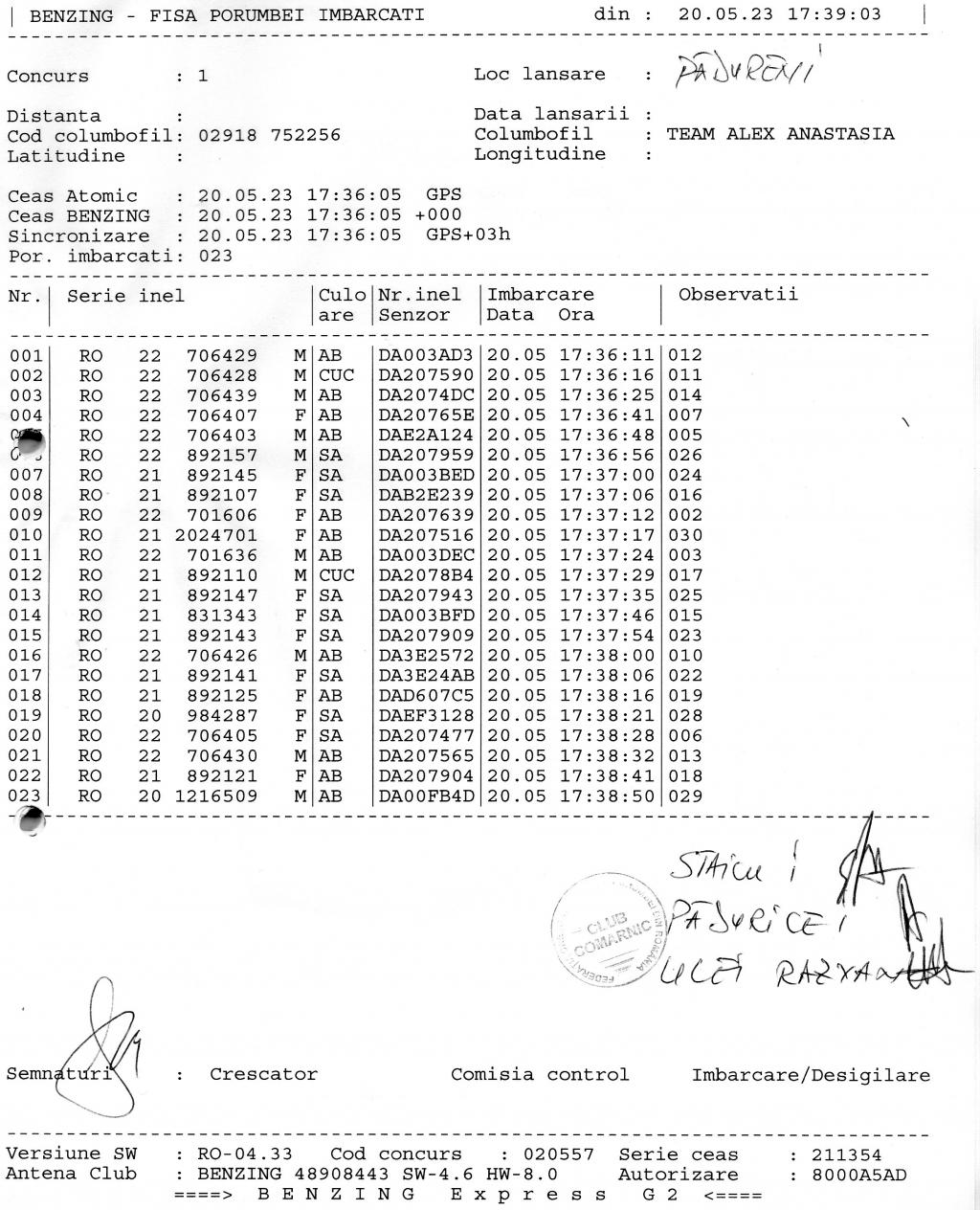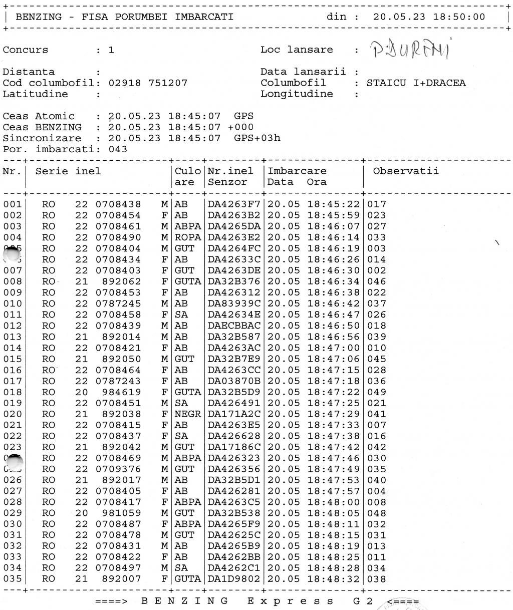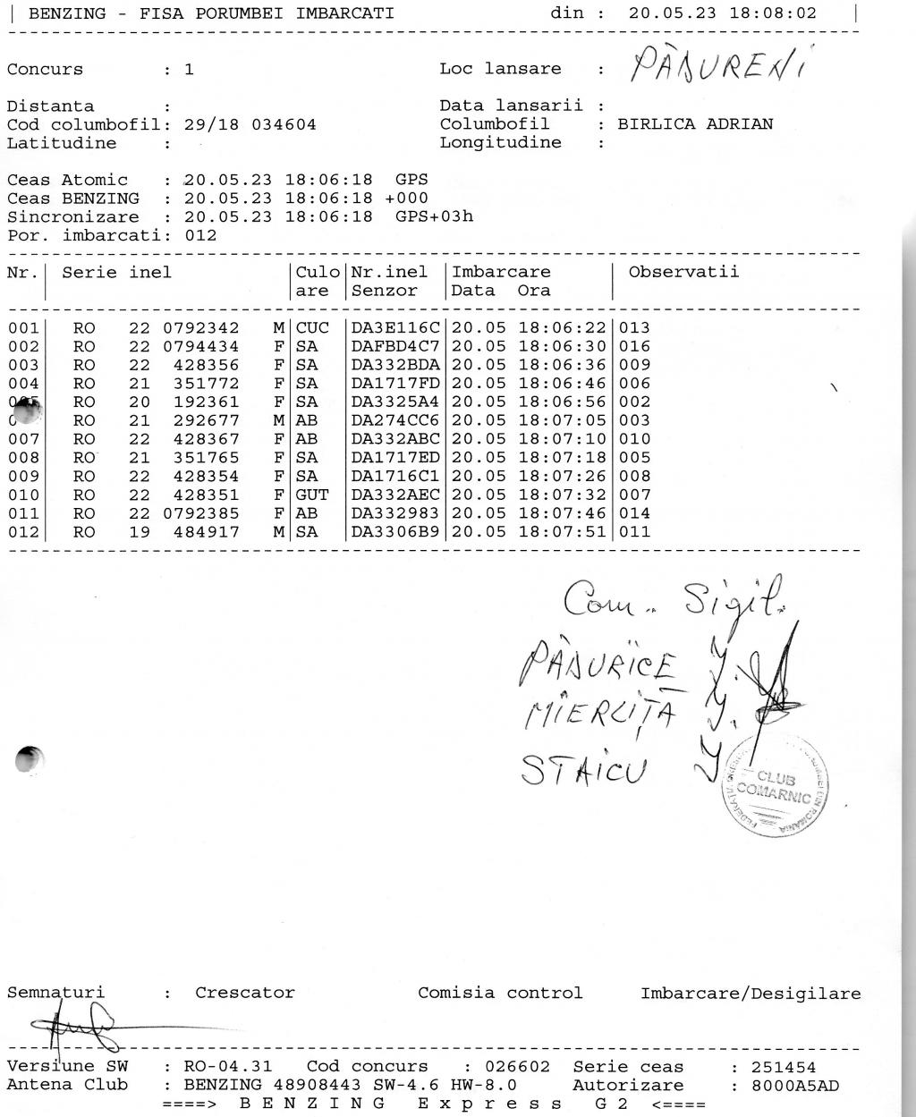 | 26 | Bidiuta Catalin | PH10818 | BEN | Comarnic | [IMB P0] | |