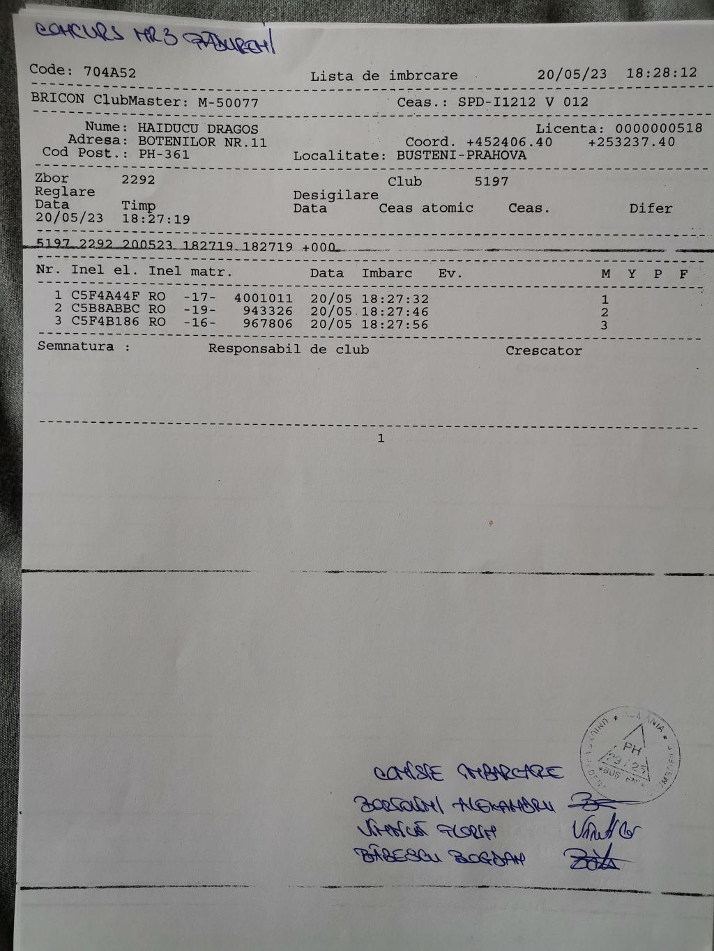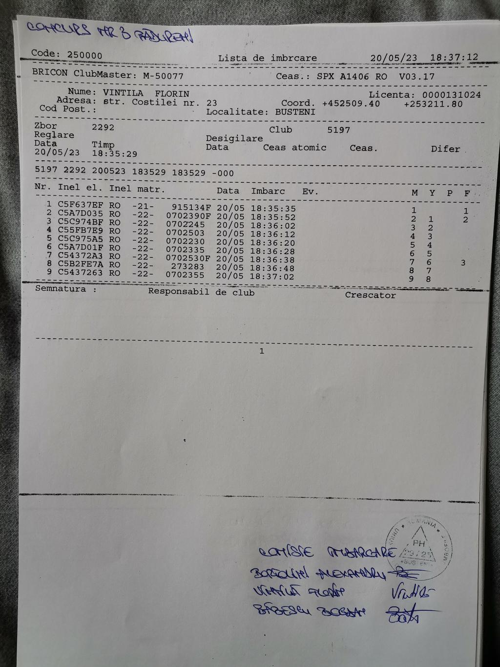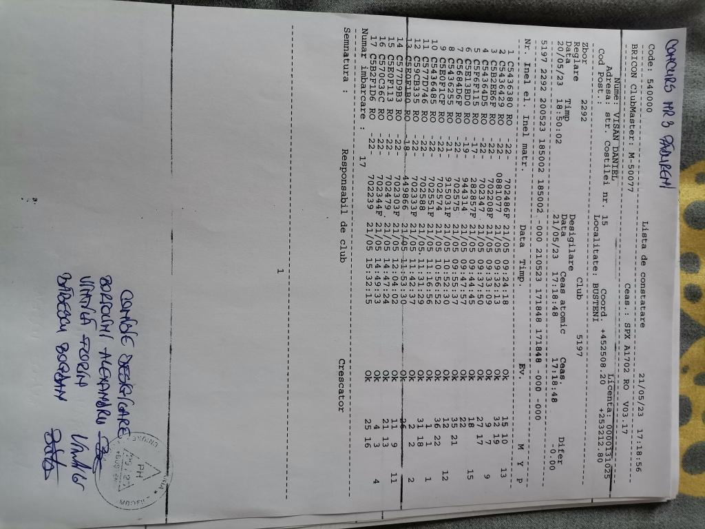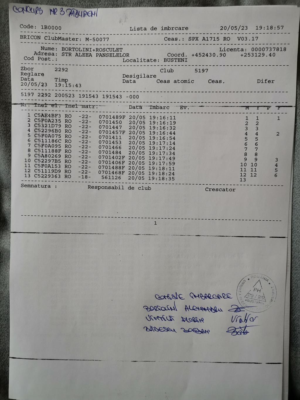 | 60 | Piciorea Alexandru | PH10998 | BRI | Comarnic | [IMB P0] | [DES P0] |