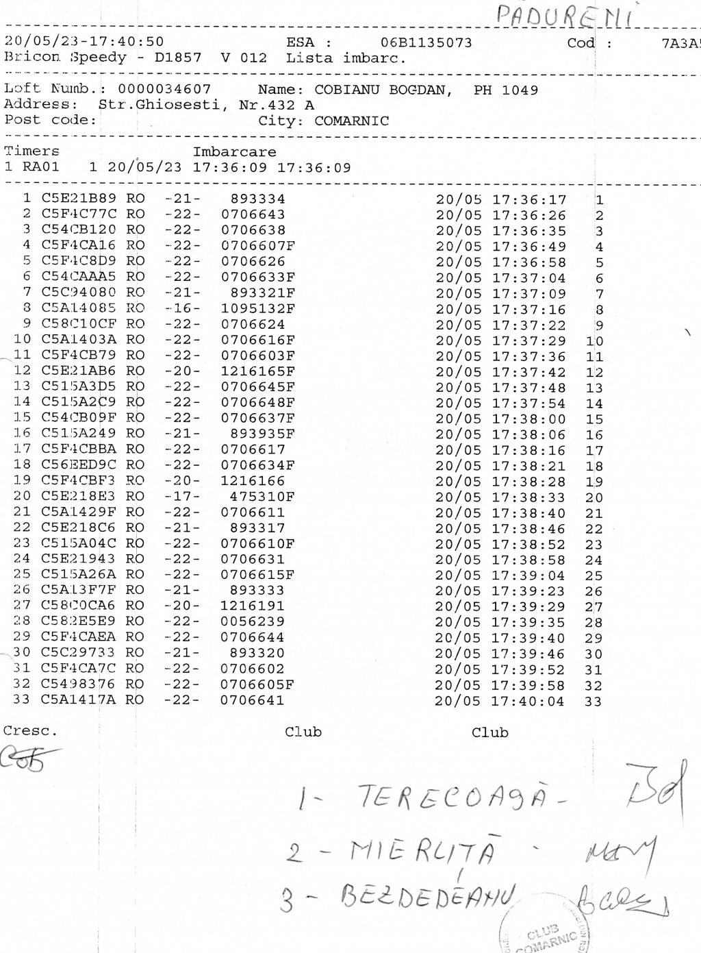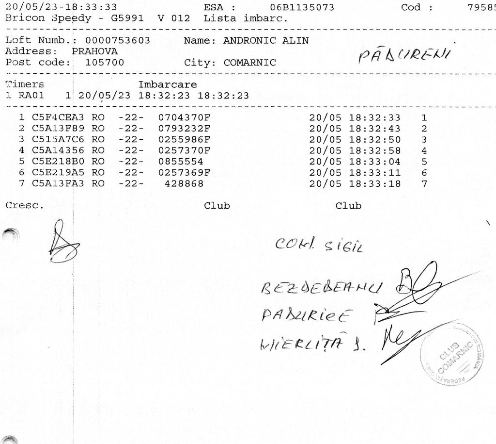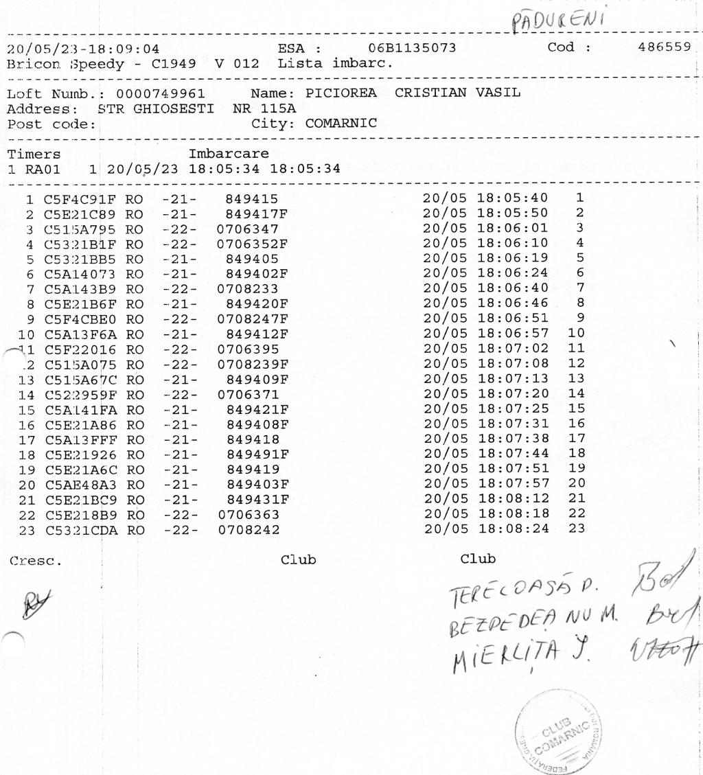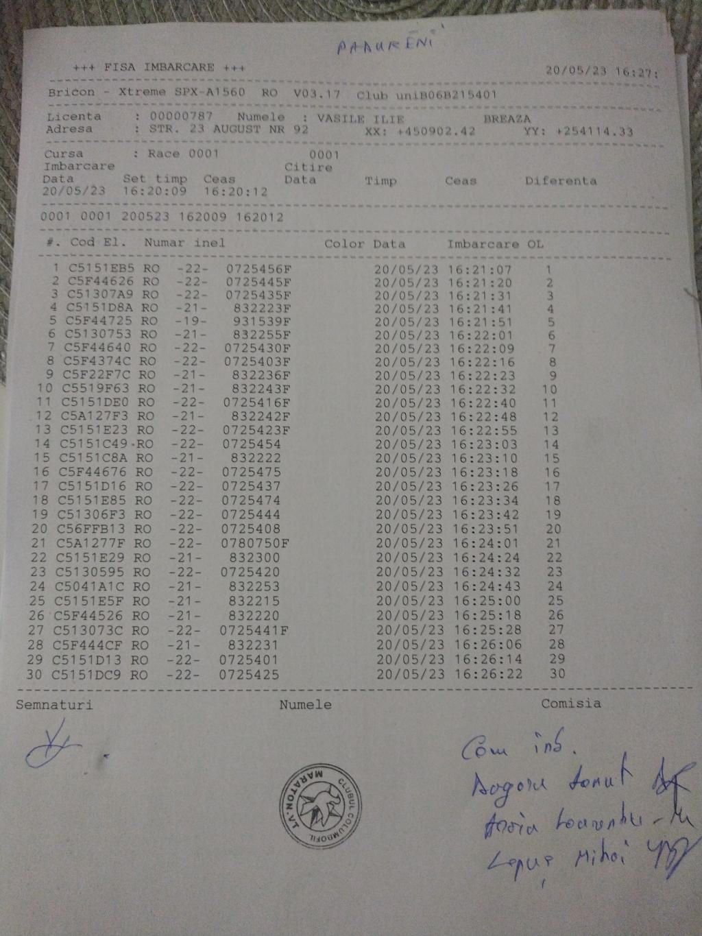 | 60 | Piciorea Alexandru | PH10998 | BRI | Comarnic | [IMB P0] | [DES P0] |