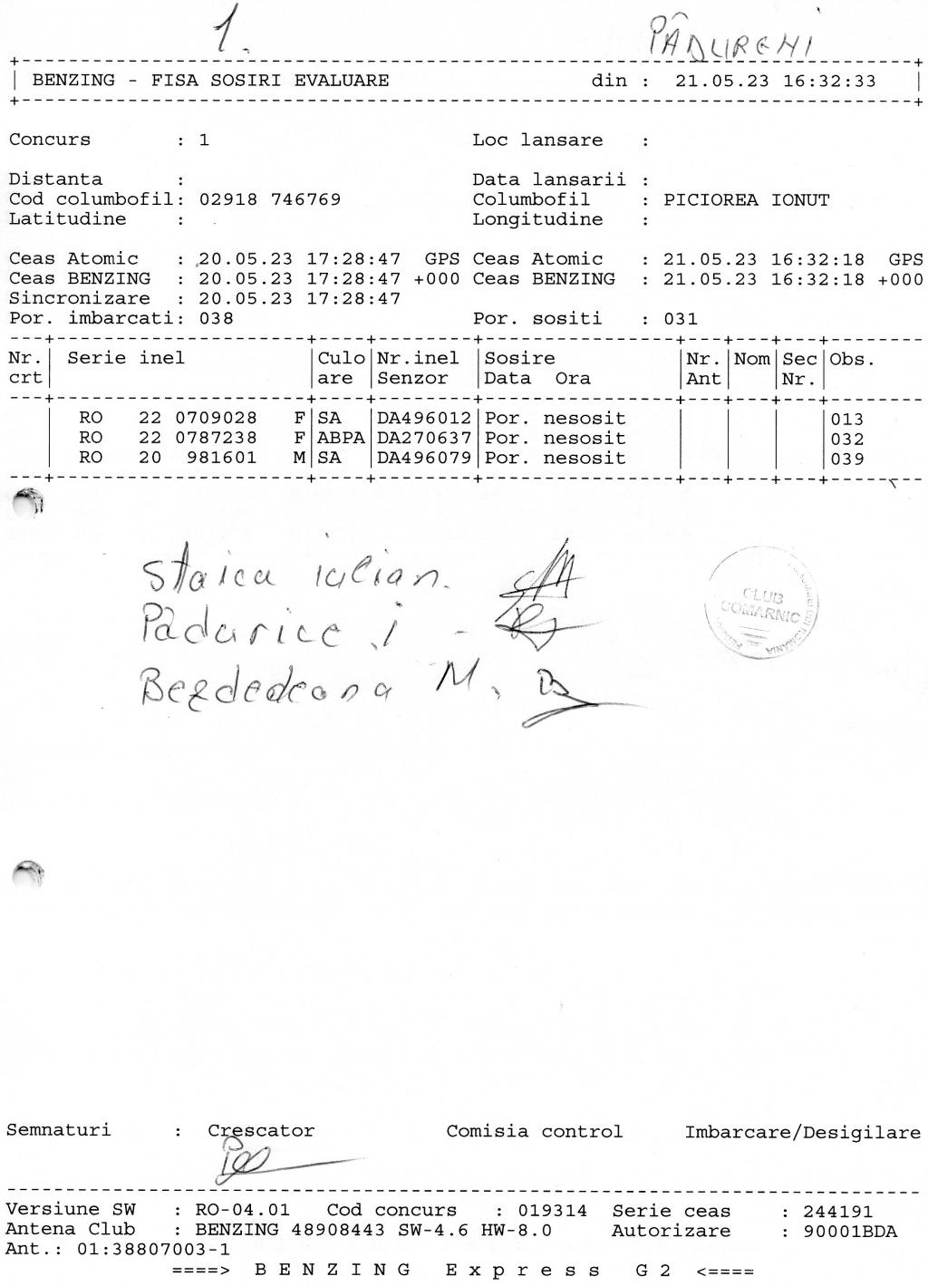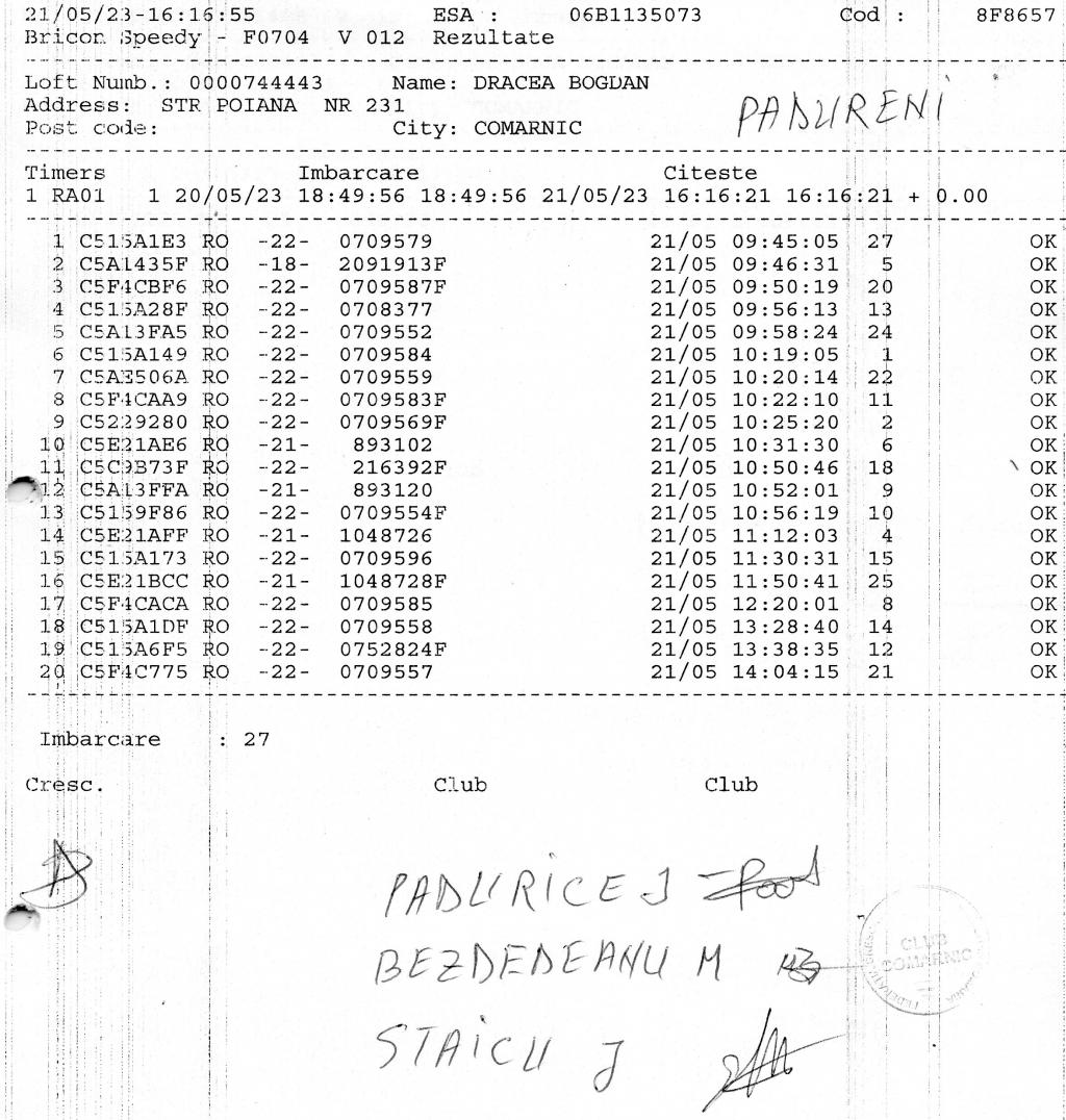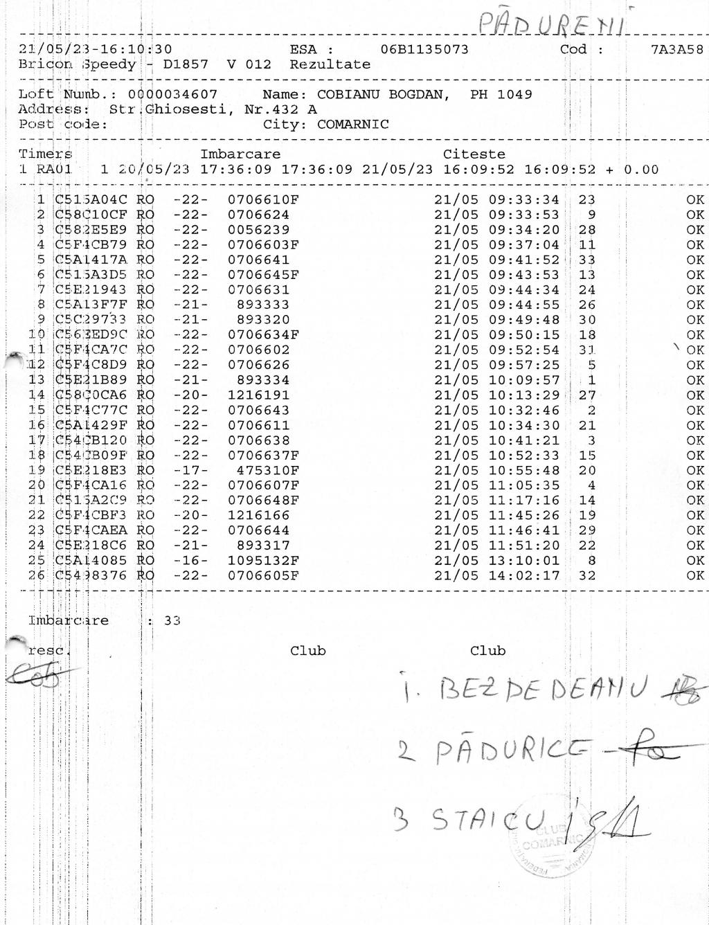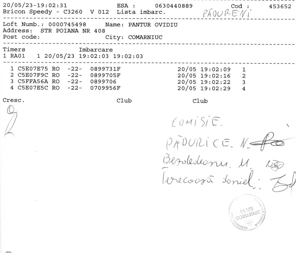 | 60 | Piciorea Alexandru | PH10998 | BRI | Comarnic | [IMB P0] | [DES P0] |