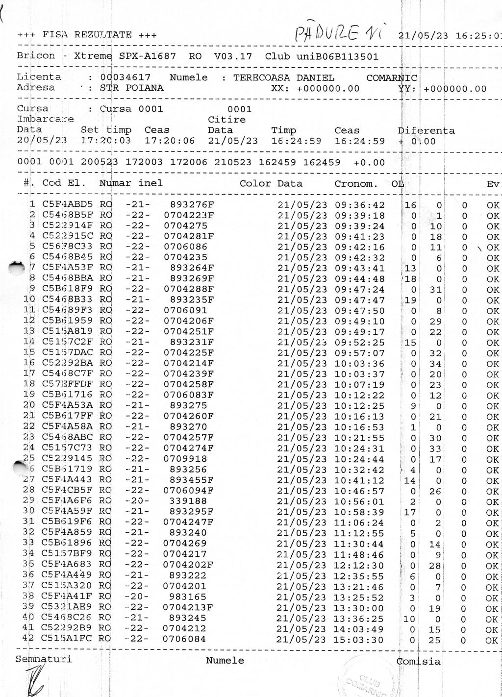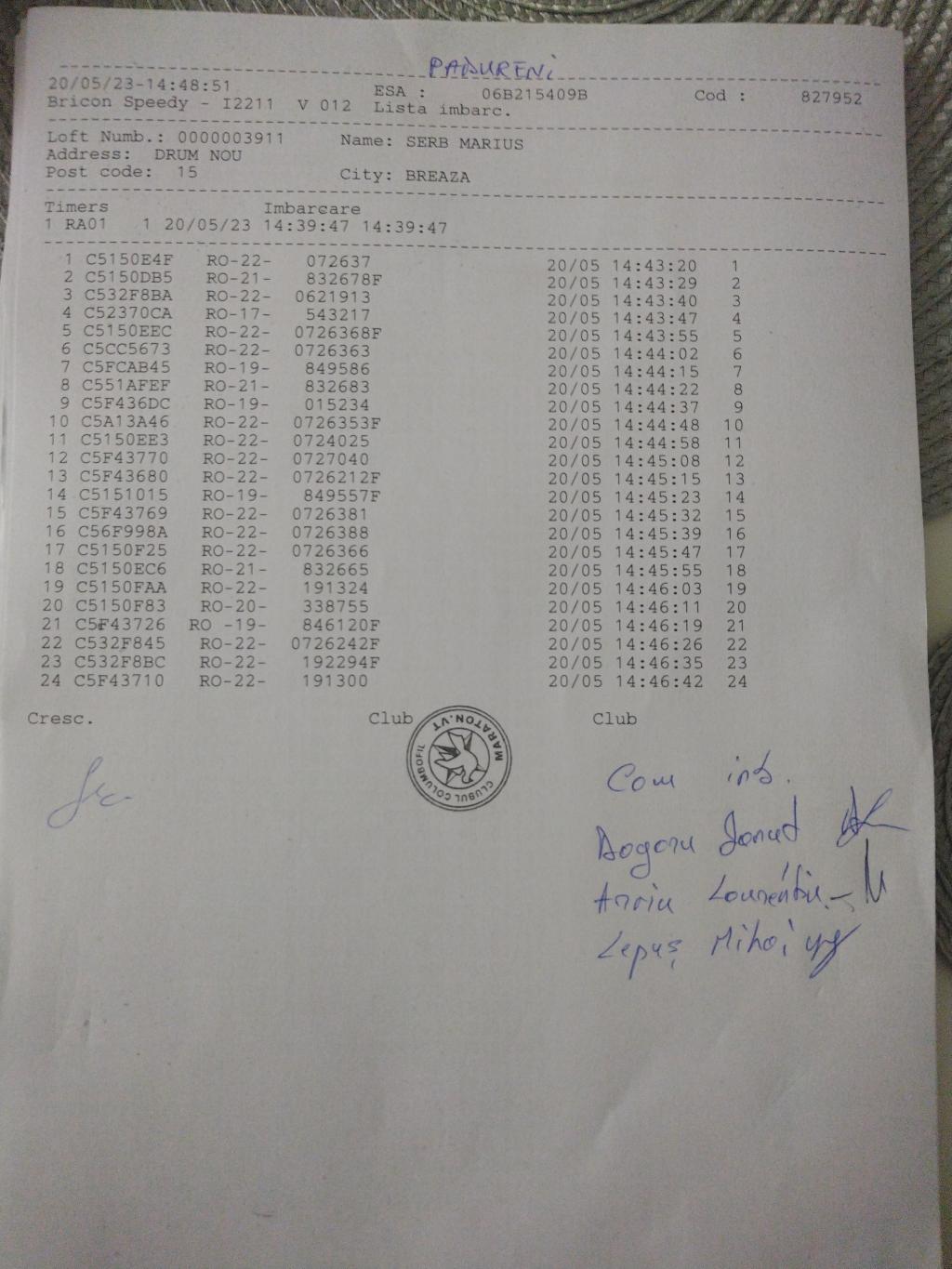 | 24 | Anita Claudiu | PH11794 | BRI | Comarnic | [IMB P0] | [DES P0] |