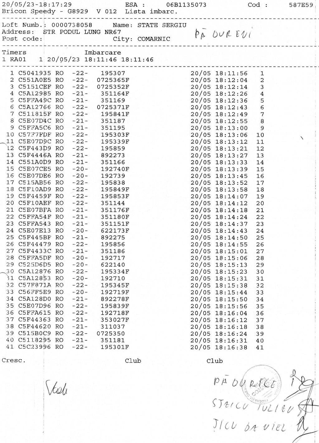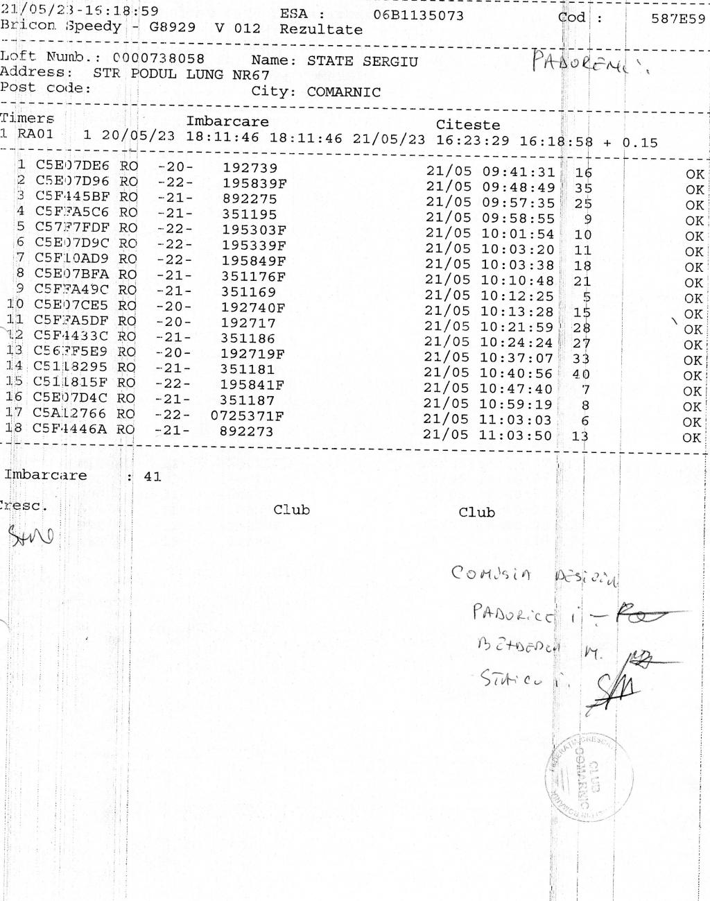 | 41 | Cobianu Bogdan | PH10493 | BRI | Comarnic | [IMB P0] | [DES P0] |