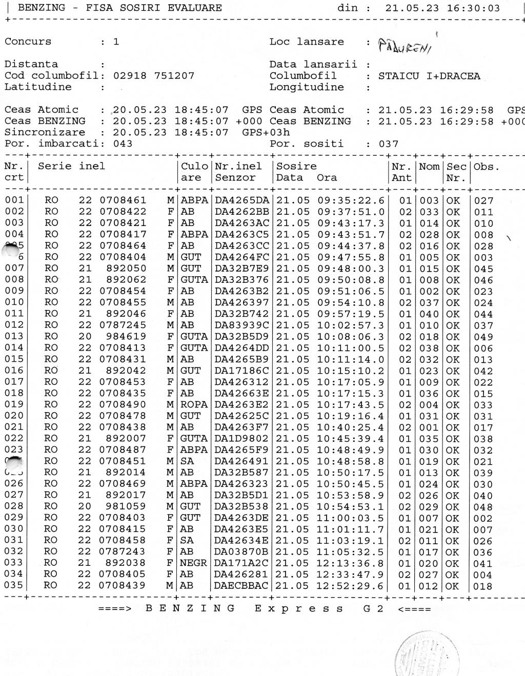 | 37 | Bunghez Adrian | PH11315 | BRI | Comarnic | [IMB P0] | |