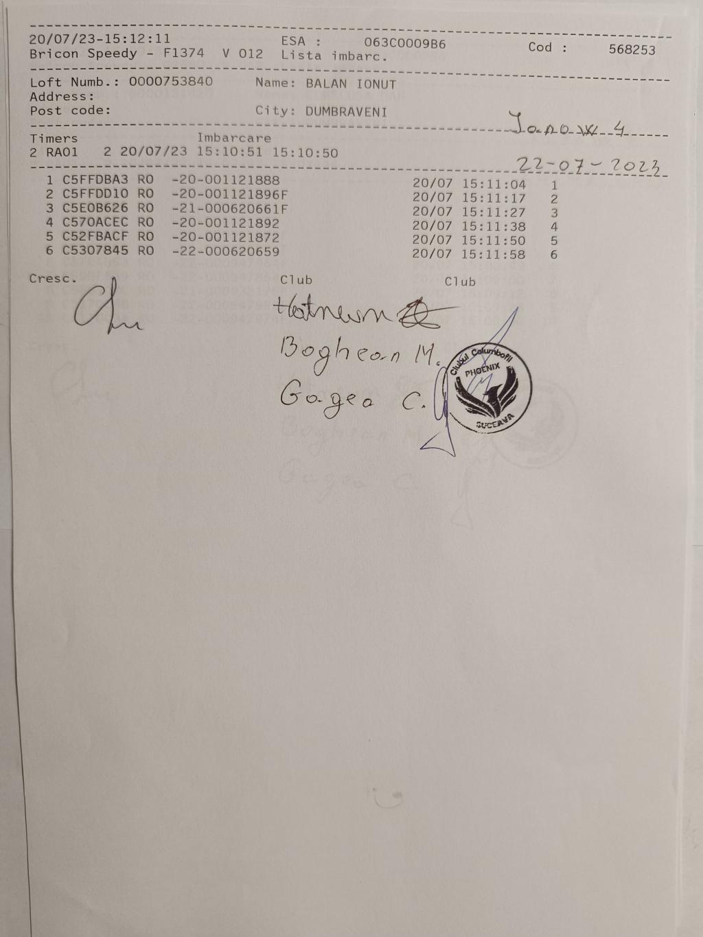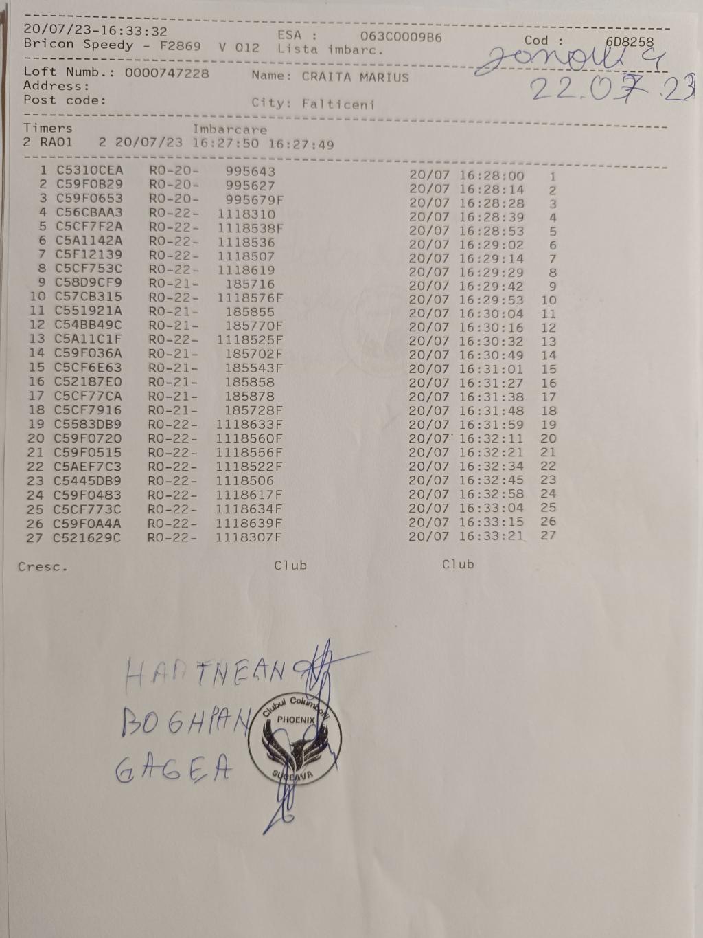 | 207 | Ciobotari Viorel | SV1766 | BEN | Phoenix Suceava |