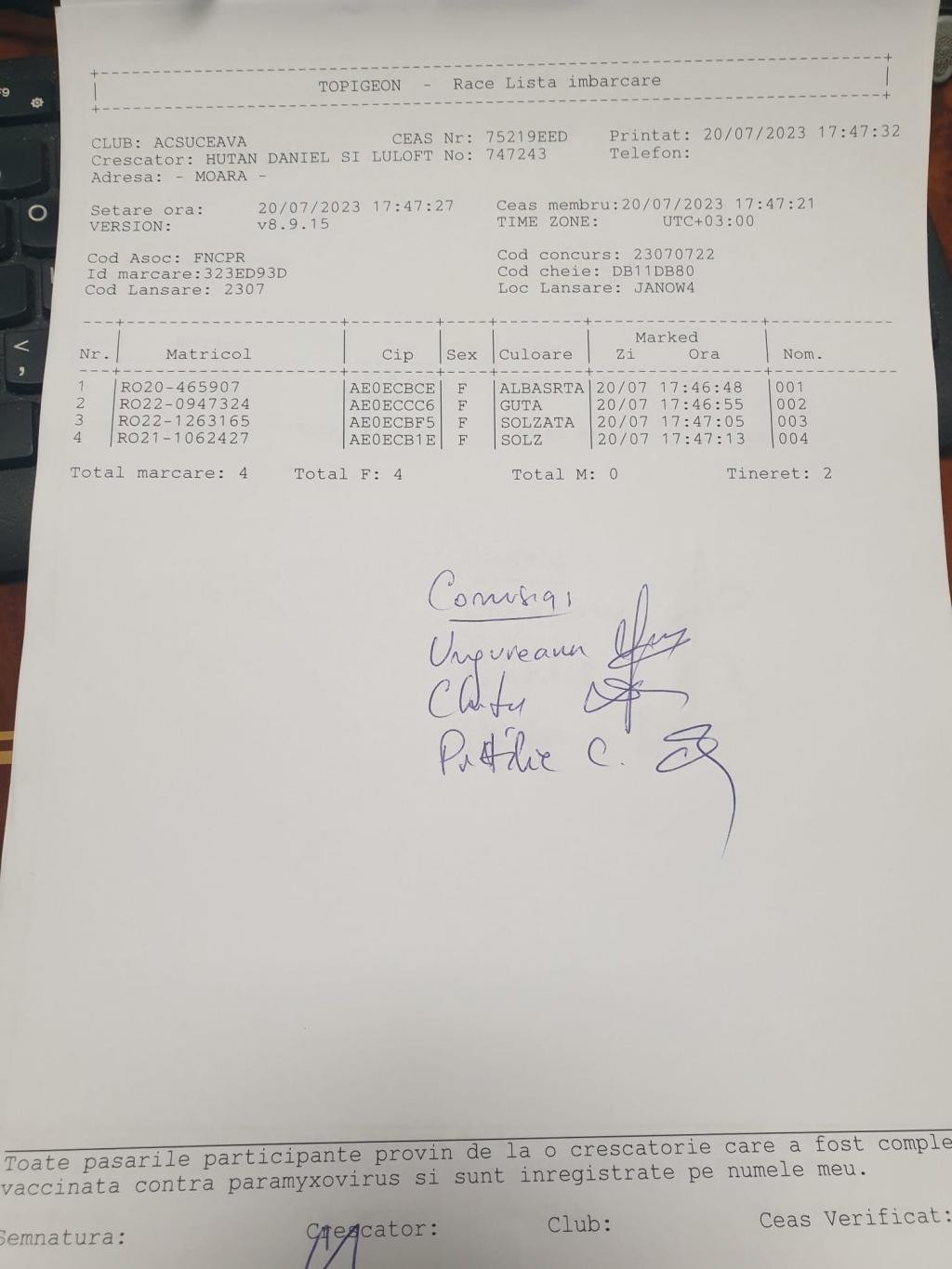 | 232 | Cornea Daniel Si Matei | SV1824 | BEN | Radauti | [IMB P0] | [DES P0] |