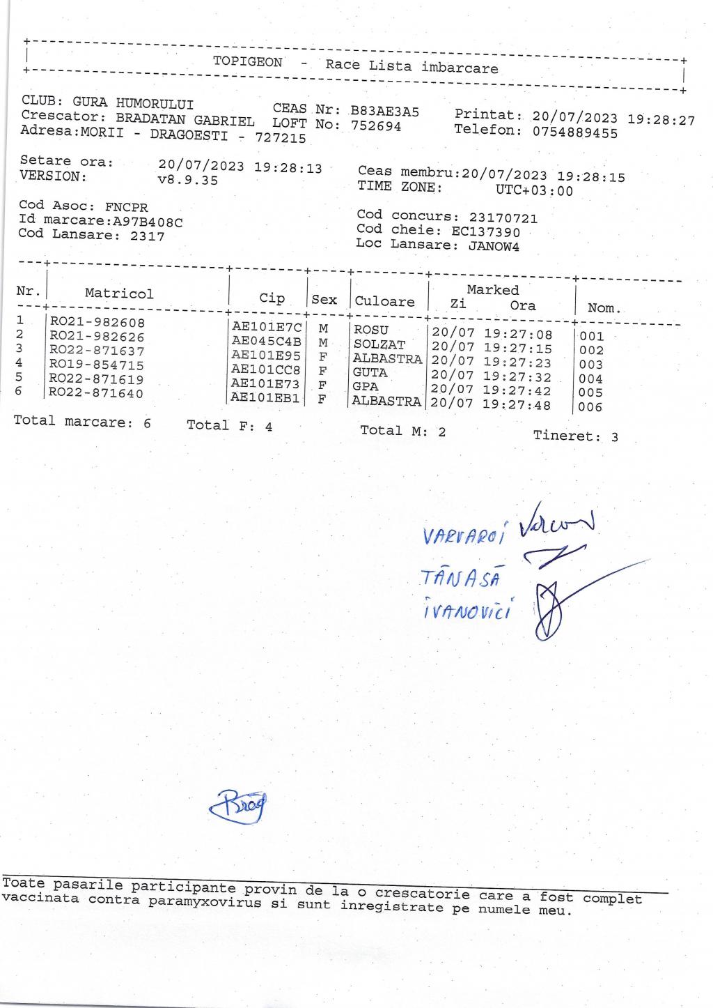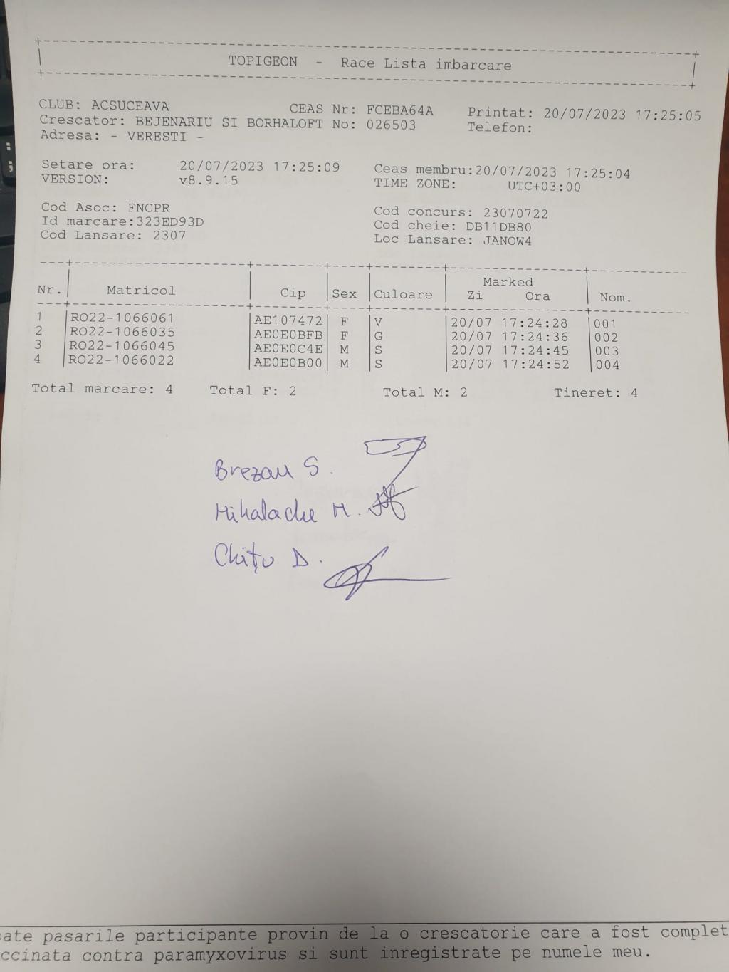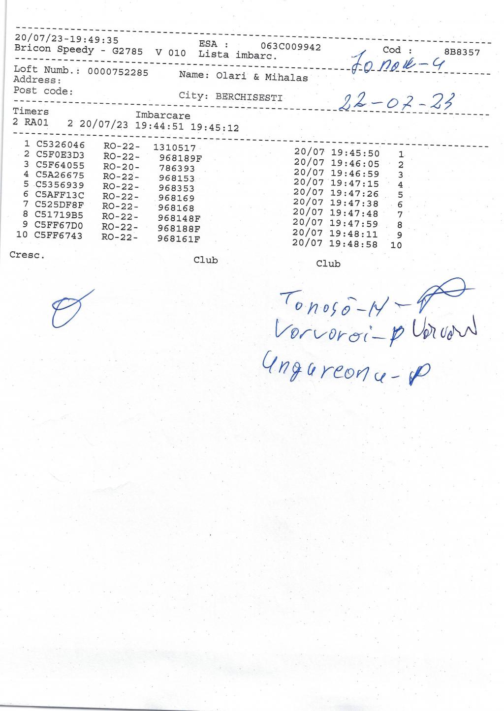 | 23 | Milici Samuel | SV1650 | TOP | Burdujeni | [IMB P0] | |