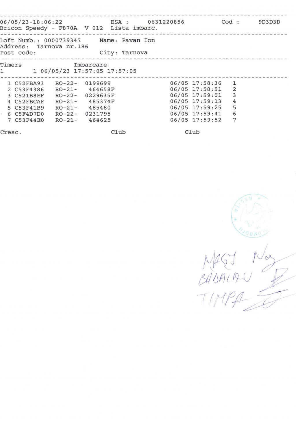 112 | Girboni Ioan | CS718 | TOP | Oravita | [IMB P0] [IMB P1] | |