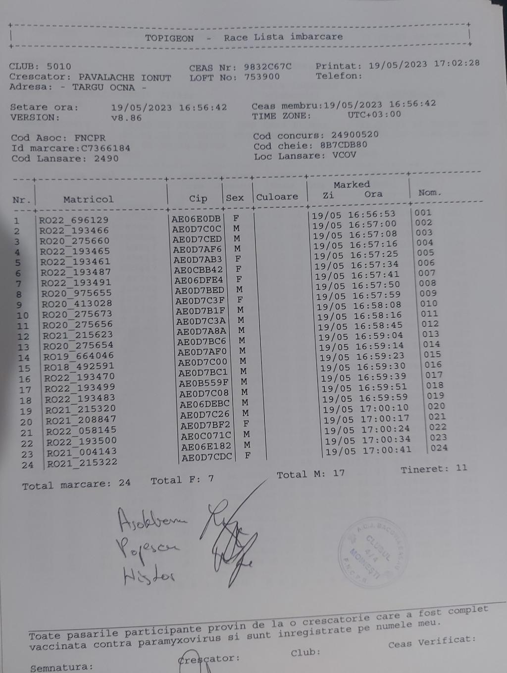 | 105 | Cuciureanu Gheorghe | BC629 | TOP | Moinesti |