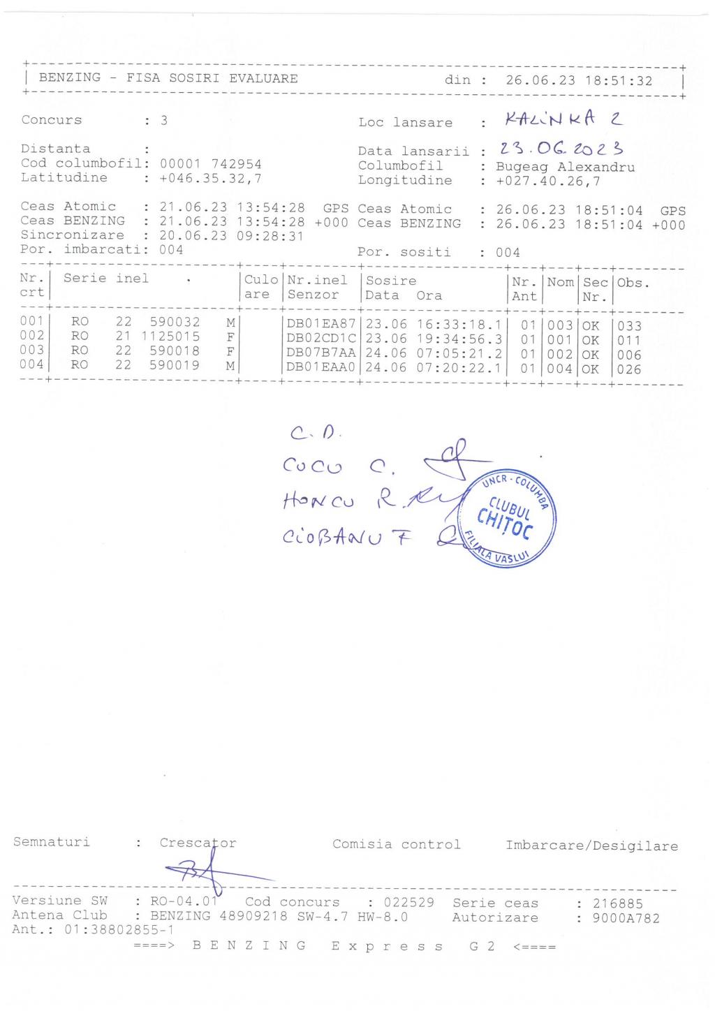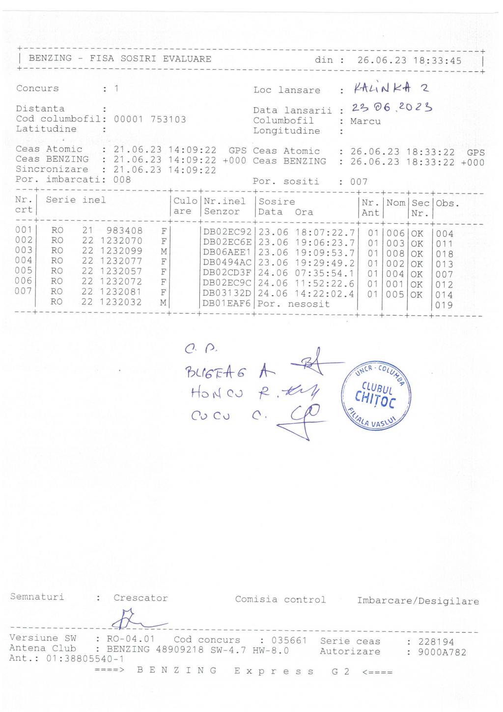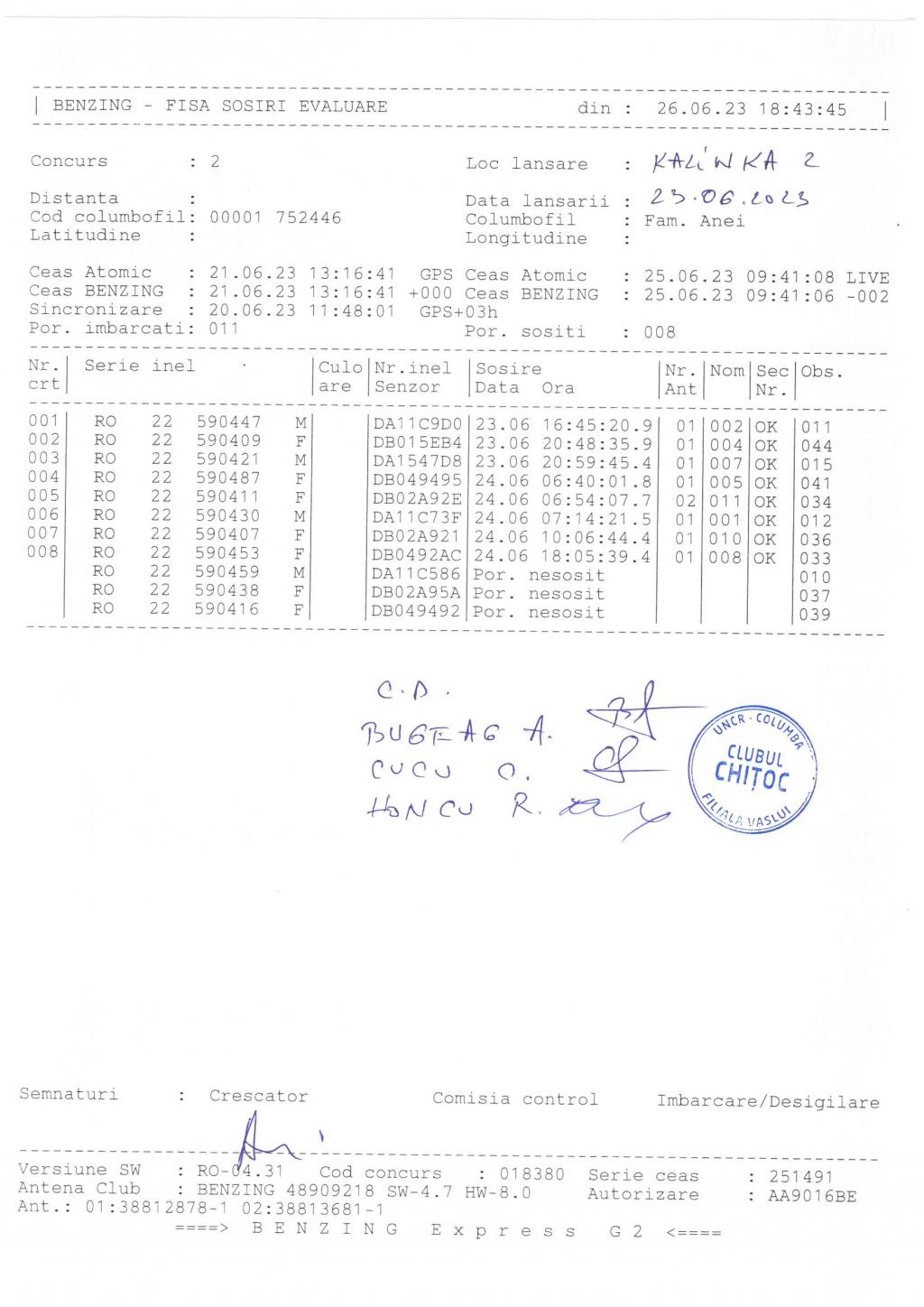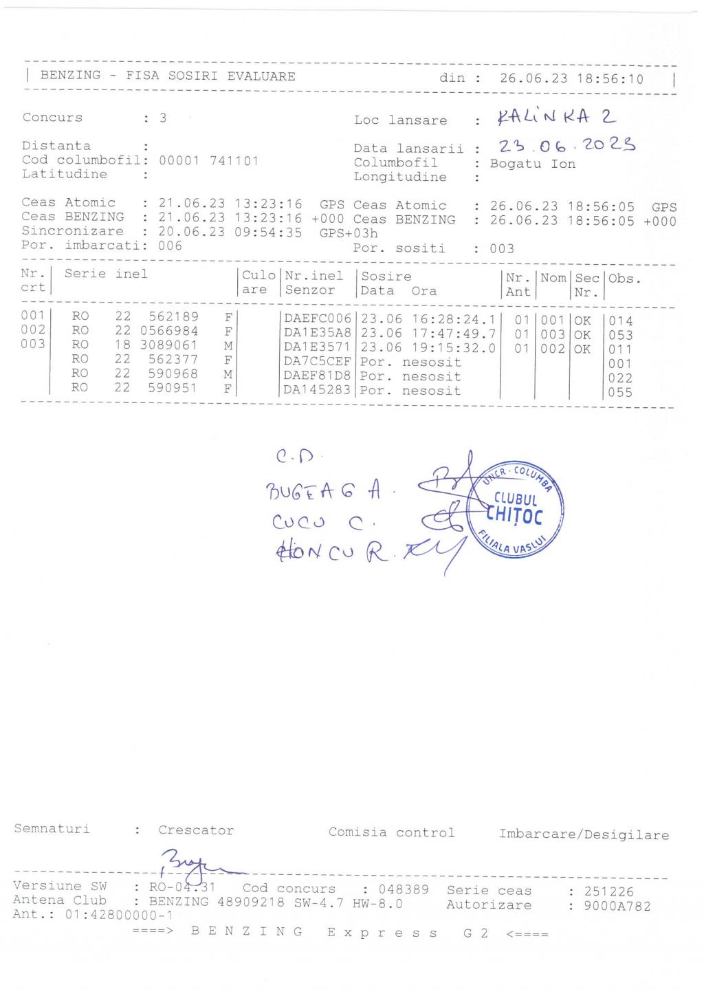 | 101 | Docanel Constantin | BC659 | BEN | Moinesti | [IMB P0] | |