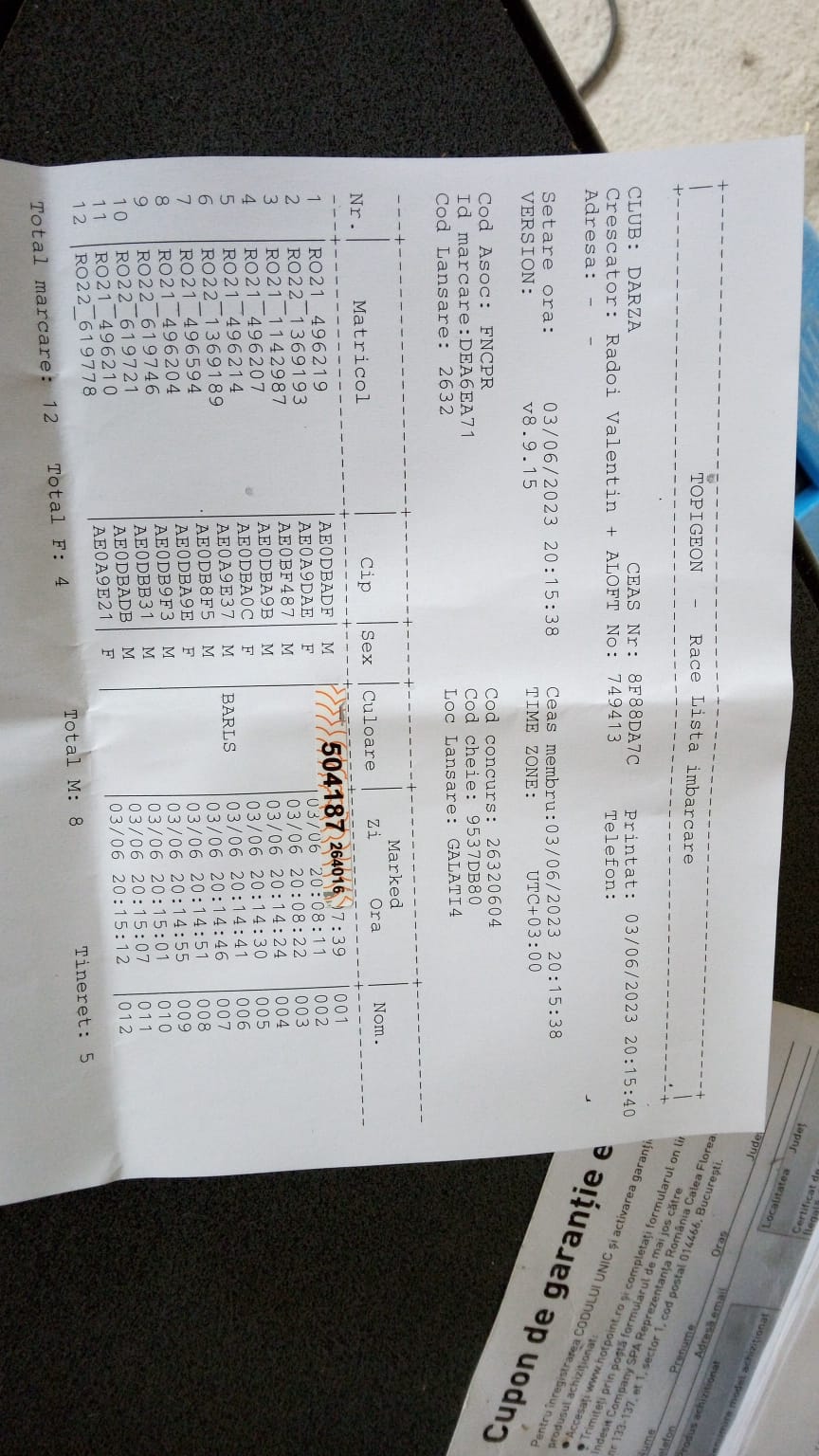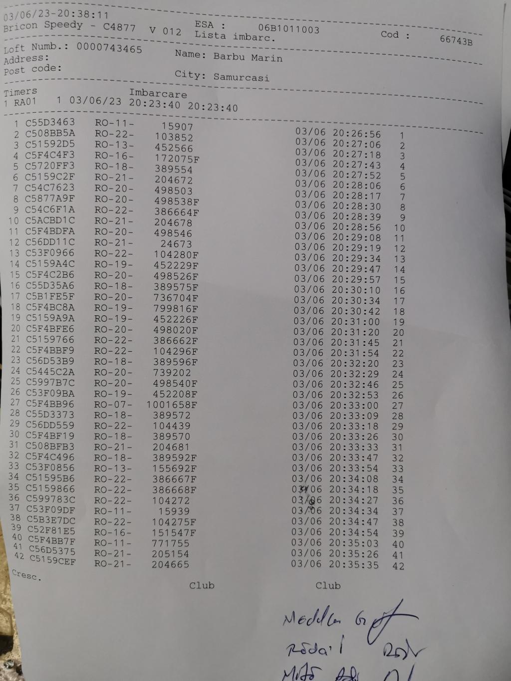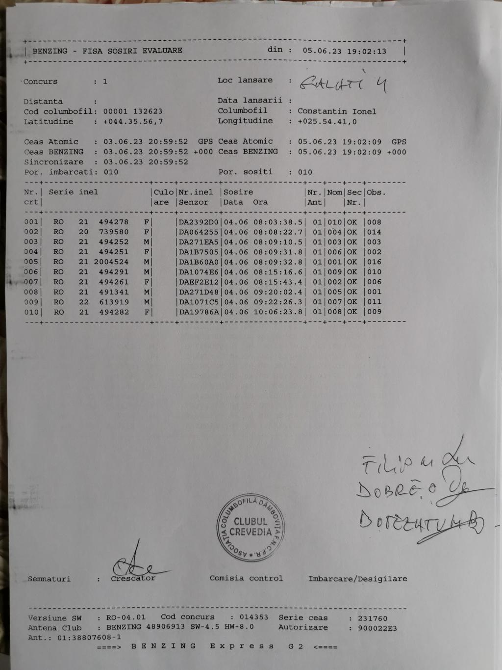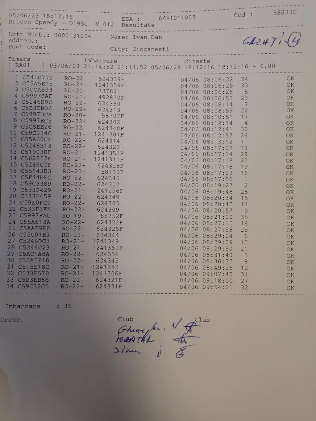| 115 | Negutu Alexandru Silviu | DB823 | TOP | Top Pigeon Lunguletu |