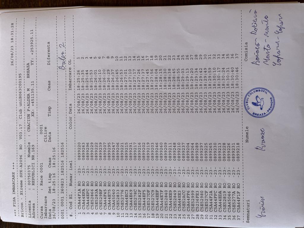 18 | Negotei Gheorghe | PH10357 | BRI | Breaza | [IMB P0] | [DES P0] |