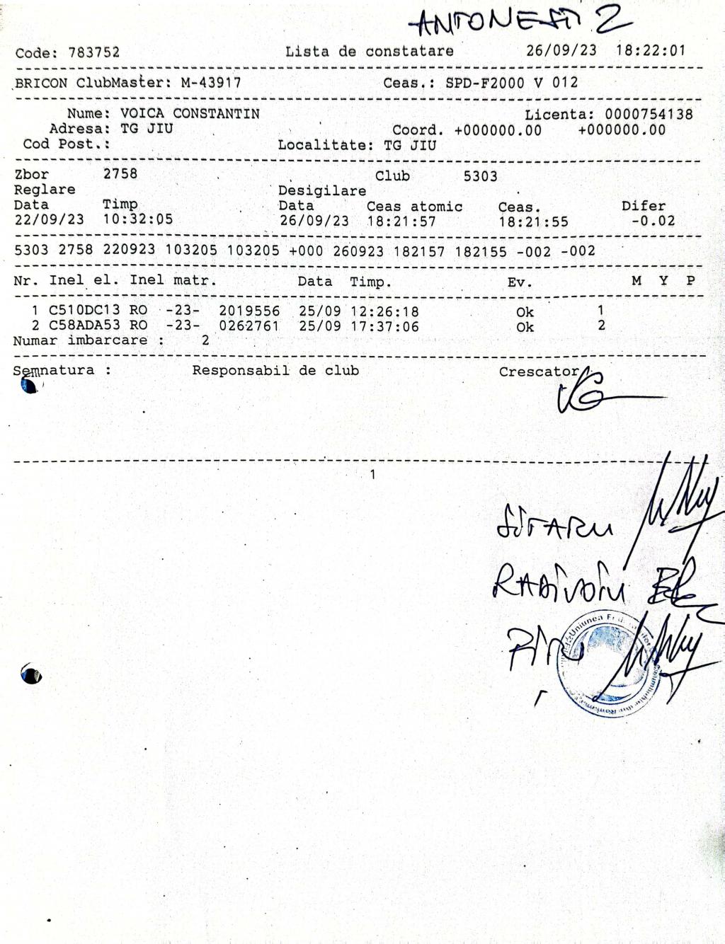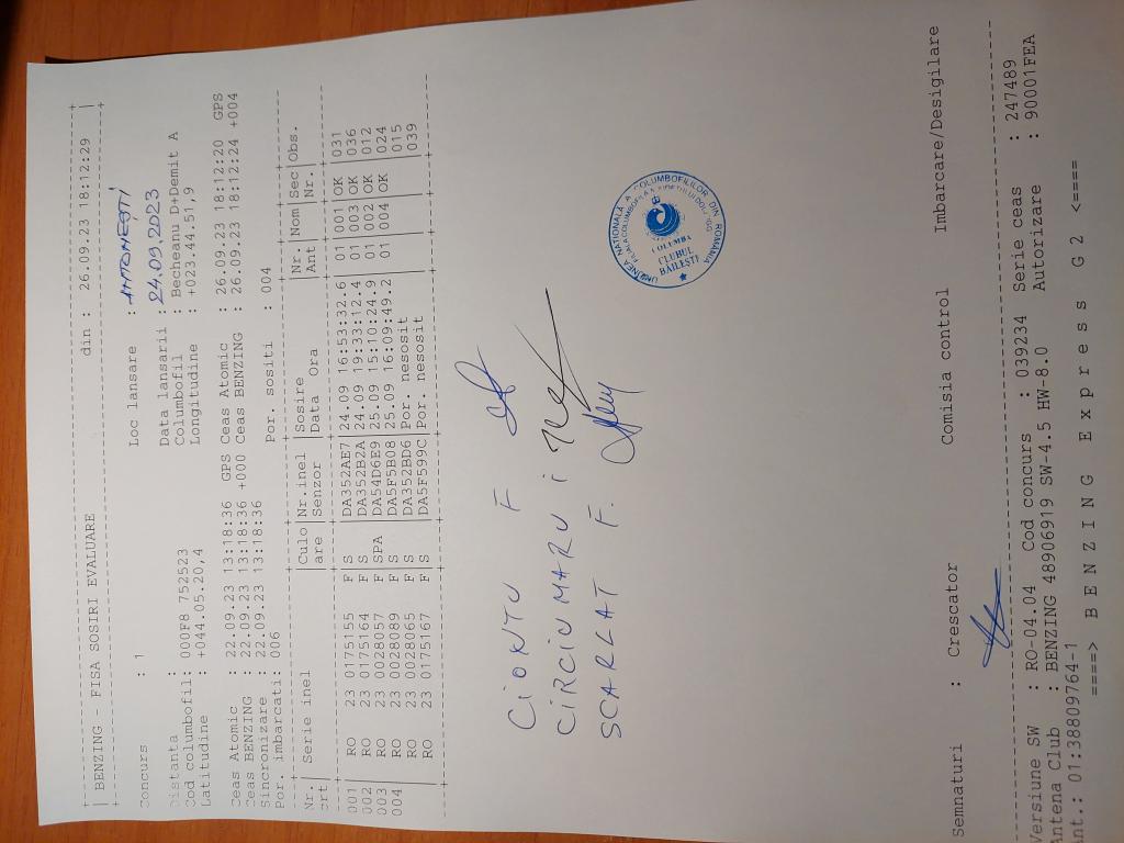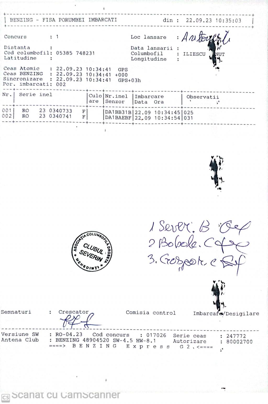| 101 | Pancea Nicusor si Grosu Gheorghe | MH958 | BEN | Cerneti | [IMB P0] | |