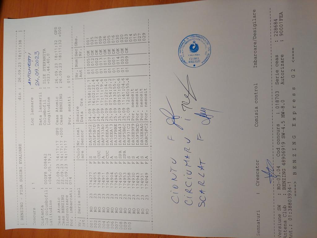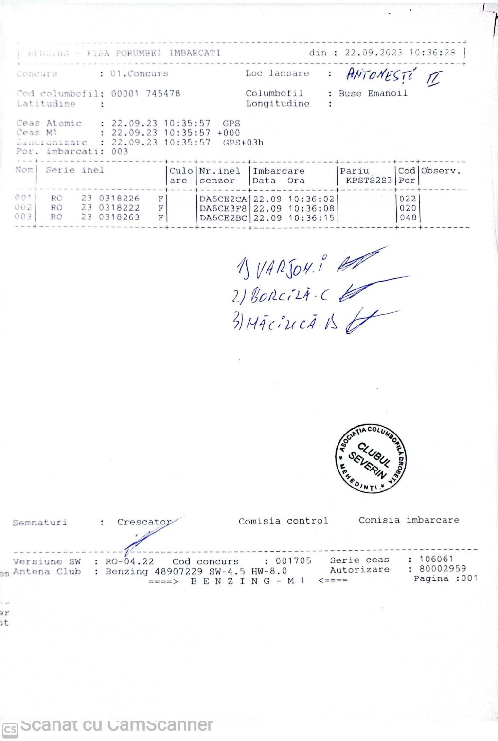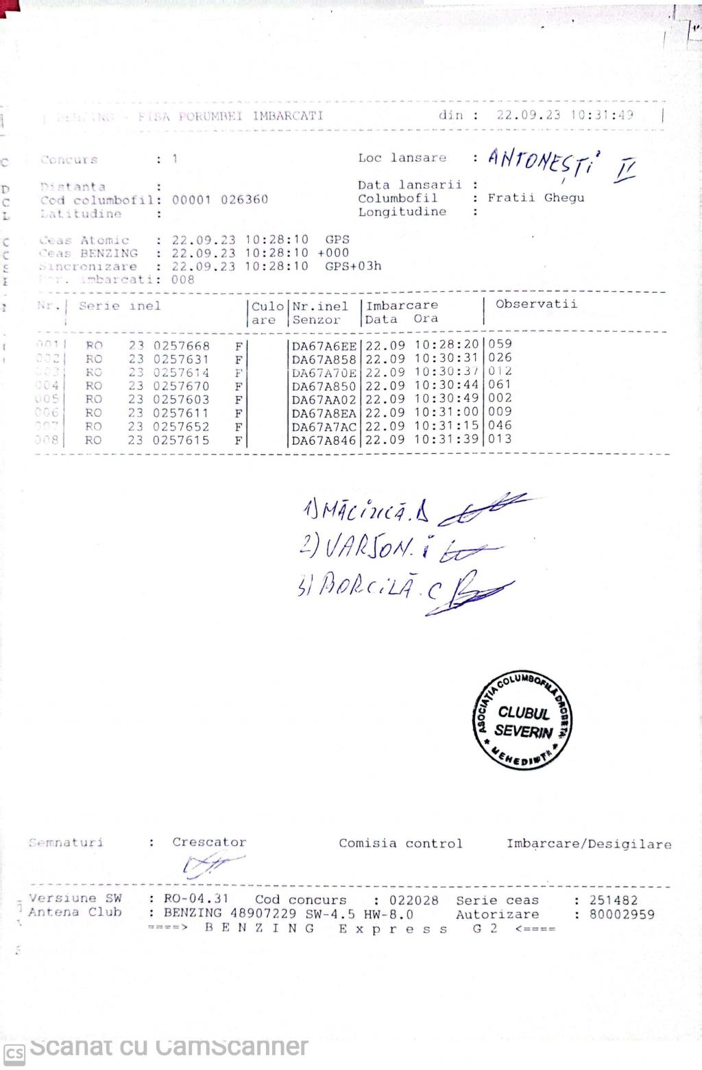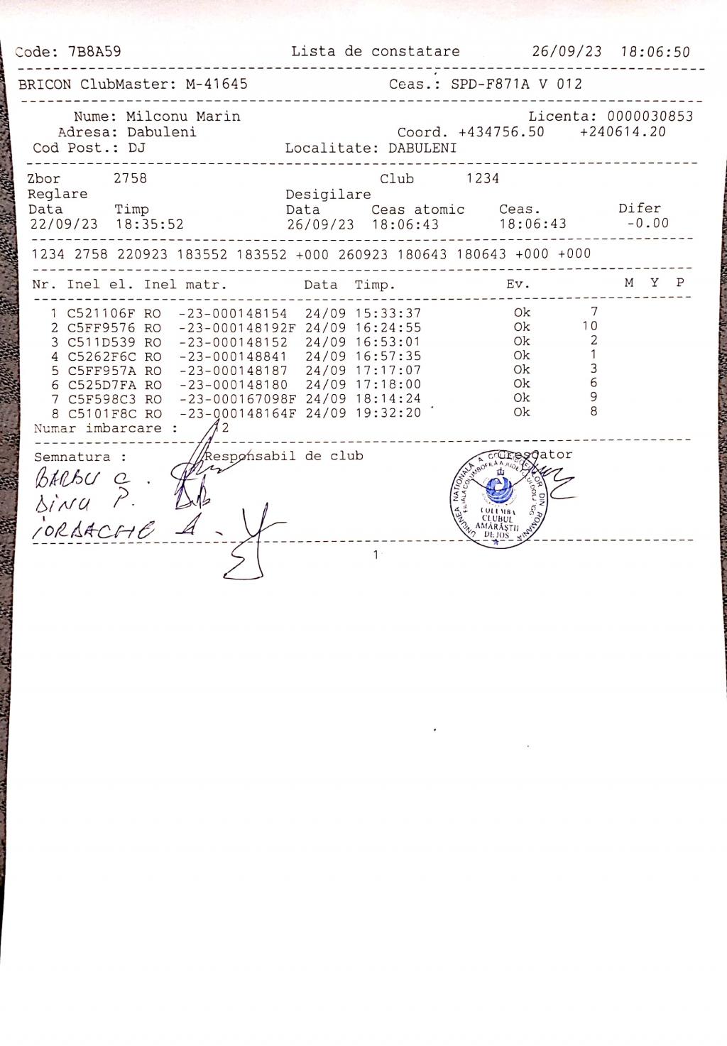 | 101 | Pancea Nicusor si Grosu Gheorghe | MH958 | BEN | Cerneti | [IMB P0] | |