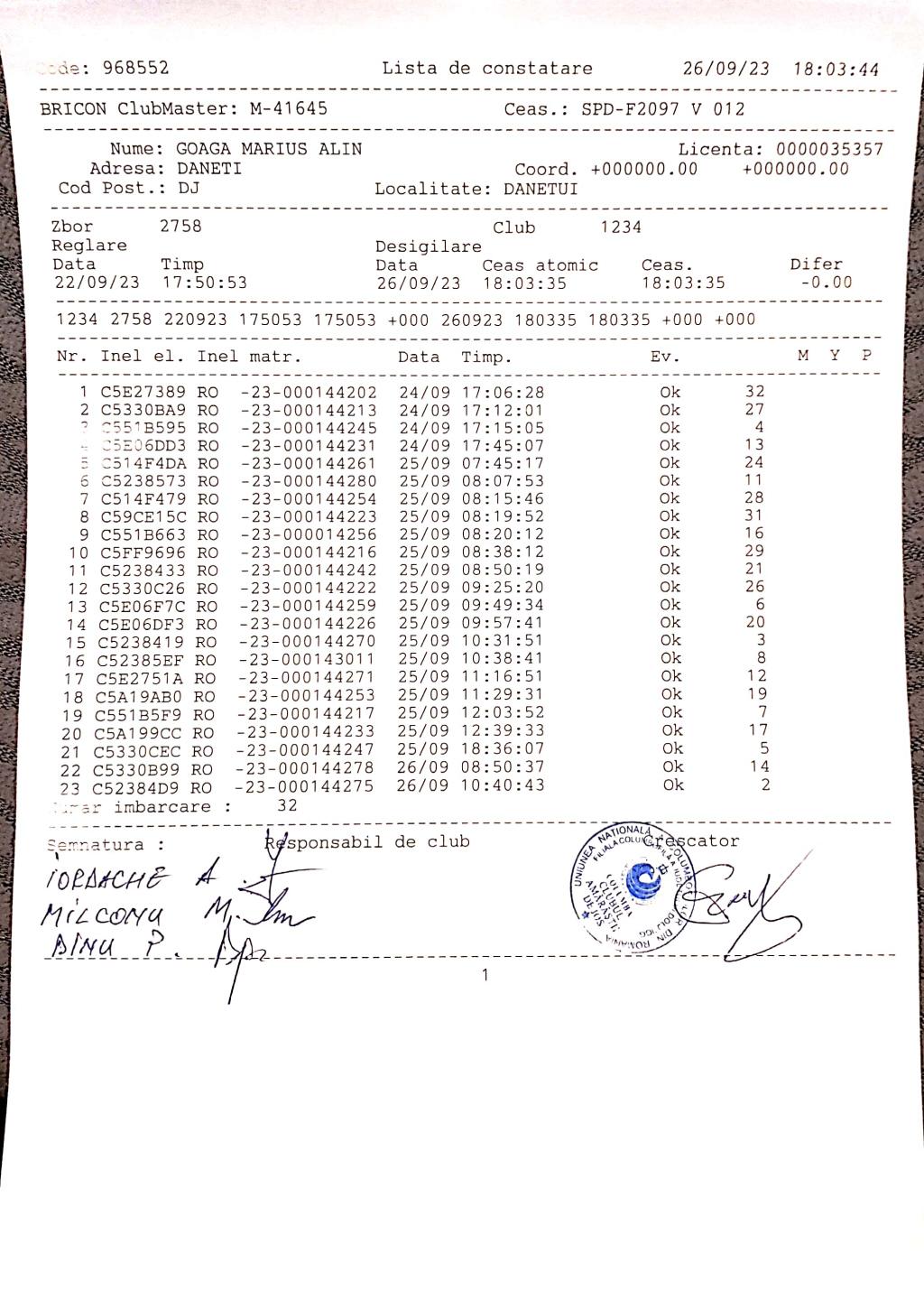 | 132 | Ciocan Andrei & Mihaela | GJ678 | BRI | Cerneti | [IMB P0] | |