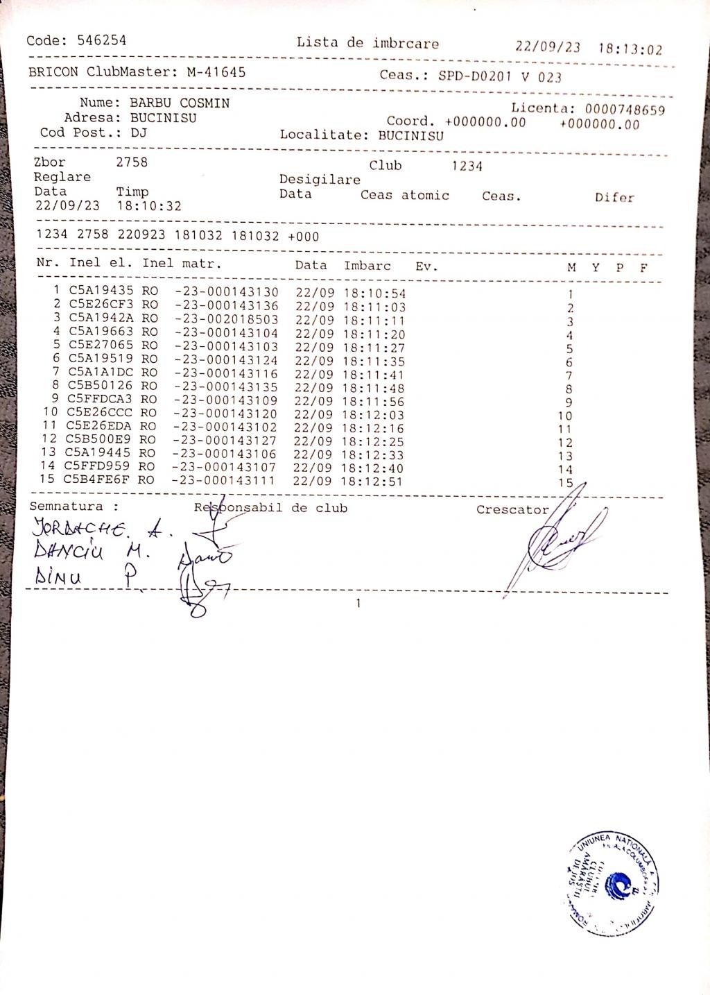 | 113 | Boruga Emilian | MH1386 | TOP | Cerneti |
