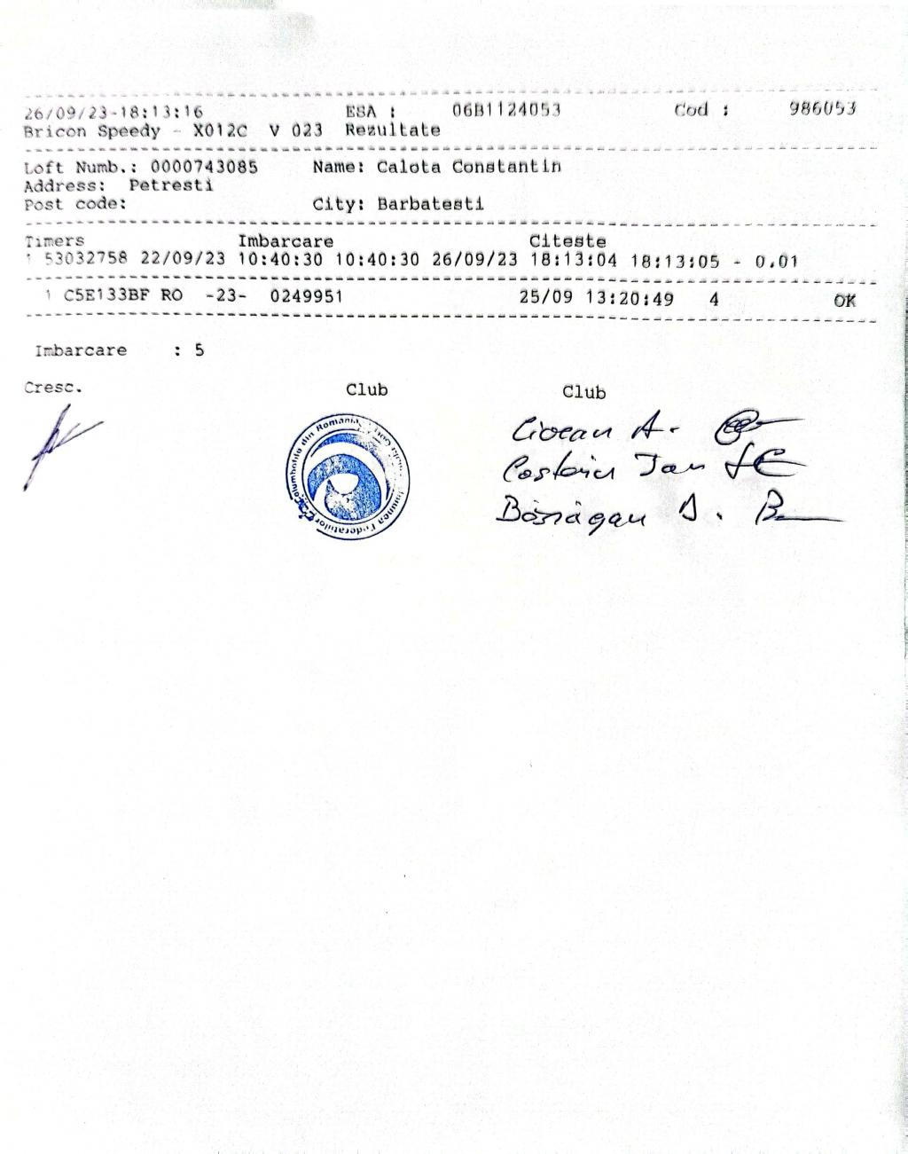| 74 | Barbulescu Virgil | MH981 | BEN | Cerneti | [IMB P0] | [DES P0] |