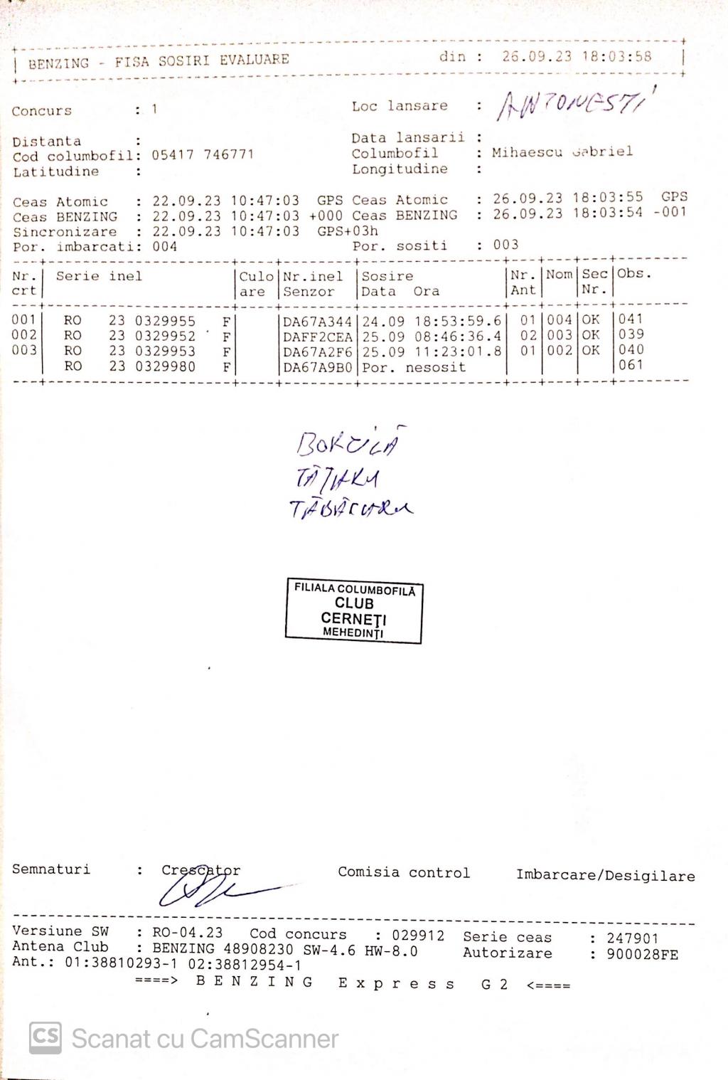 | 117 | Cotirta Vasile | MH810 | TOP | Cerneti |